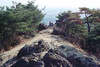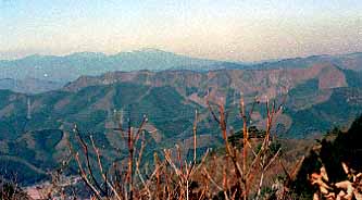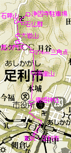 標高も低く、歩程も短いコースですが、展望も良く、見所も多く、非常に中身の濃いコースです。超低山の割に東京から比較的遠く、また、往きは東武・足利市駅 からタクシーを使いますが、十分にその値打ちはあります。 浄因寺は、断崖絶壁に囲まれた風情のある寺で、裏山を登って尾根へ出ると左方に石仏群があります。分岐に戻って逆方向登って行くと本コースの最高点で、展望にも恵まれた石尊山です。行道山は浄因寺の山号で、そう言う名のピークはありません。 石尊山からは、中腹に露岩帯を持つ深高山が目立つ。左奥は冠雪し始めた赤城山。大岩山を過ぎて車道を行き(山道もある)、毘沙門天を見物してから再び山道に入って274.4m三角点峰への登りは、後ろに大岩山、前に両崖山、右手に石裂(おざく)山・遠く日光山群と非常に展望の良い道です。 両崖山からの下りには、露岩に松も現れる。下界も見渡せて、気分のいい道。両崖山から織姫神社方面への下りには、露岩に松という乙な風景もあります。織姫神社上部の公園や神社の建物は異常に立派です。 石段を下れば平地です。足利市駅を目指して、てくてくと歩いて長い橋(中橋)を渡って行くとき、なぜか「渡良瀬橋」(森高千里)という曲が浮かんで来ていました。 ▲項目索引▲ ◎トップページへ戻る◎ |