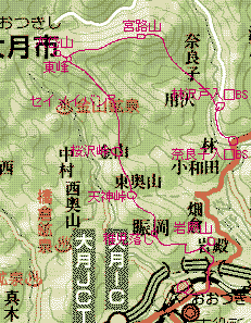 (JR・猿橋よりバスにて)奈良子入口BS905…林沢戸入口BS925…1100宮路山1110