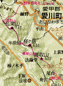 仏果山1048…半原越1207…1227経ヶ岳1242…1312華厳山1320…1350高取山1355…