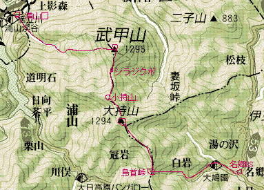 (西武線・飯能よりバスで)名郷BS810…鳥首峠925…1045大持山1103…小持山1127…