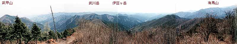 武甲山は、石灰岩採取でとうとう頂上まで削り取られてしまいました。標高は41mも低くなり、大持山とほとんど変わらなくなってしまいました。標高1336mの頃は、いろいろコースを変えて3〜4年間に4〜5回は訪れていました。その後、疎遠になっていましたが、気を取り直して再訪してみると、「腐っても鯛」(?)、やはり今でも十分いい山でした。(昔はもっと良かったはずですがもう遠い記憶の彼方。^^;) このコースは比較的長いので、飯能駅から可能な限り早いバスに乗りました。名郷で下車し、キャンプ場のある沢沿いの林道を行き、採石場の所から山道に入ります。鳥首峠は小さな祠のある小さな場所です。 鳥首峠から尾根を北に向かうのは久しぶりです。すぐに、都県境尾根がよく見える展望地があります。 大持山に近付くと、東方の妻坂峠からの道(防火帯)を合わせる辺りからの展望は抜群です。大持山周辺は足下にはカタクリ、図上にはツツジと花の彩りも楽しめます。ここから大持山を往復して、妻坂峠方面に向かっても良いくらいですが、本日は武甲山を目指します。 ![]() 大持山山頂南面からの展望。 小持山を過ぎて、最低鞍部のシラジクボからは標高差200mの急登を頑張ります。山頂直下では、右に表参道、左に浦山口への道を合わせます。山頂展望台は、神社の裏手で北側の展望は見事です。しかし、金網越しの切り立った崖下は石灰岩露天掘りの広場になっており、月の表面みたいな所をパワーショベルやダンプカーが蠢いています。発破の時には足下が揺れ、頂上もろとも崩れ落ちるのではないかとビビりました。 昔、下山に便利だった西参道は山頂が低くなるよりも前の採掘で、なくなってしまったので、下山路は、先程の交差点から浦山口へ。ちょっと車道に出てからが長い道のりですが、のんびり歩けます。 ▲項目索引▲ ◎トップページへ戻る◎ |