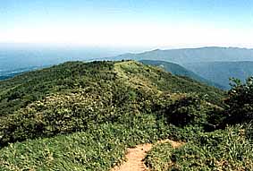 土曜日に、小田原の御幸ヶ浜のプールサイドから箱根山を見上げながら考えました。「もしかしたら、今は意外にロングコースのハイキングの適期ではないか」と。日が長い(日没1900頃)、しかも、雷の心配も真夏より少ないので、行動時間が長く取れる。暑いけれど風が体感温度を下げてくれる。 そこで翌日曜日、箱根の外輪山を、のんびり長々歩くことにしました。 小田原からバスで仙石へ。ここから金時山へは金時神社経由で直接登れますが、乙女峠経由で長尾山(1144)1山稼ぐ事にしました。仙石から接続が良ければ1時間に1本ほどあるバスが乙女口まで利用できますが、今回はR138を乙女口BSまで歩くこととなりました。 乙女峠付近から見るカルデラ内は如何にも箱根。茶屋のある乙女峠からいよいよ外輪山の縦走開始、長尾山を経て、金時山へ。山頂は、箱根外輪山最高峰にふさわしい好展望で、いつ来ても観光地のように賑わっています。茶屋でそばを頼みました。そこまではよくあることなのですが、炎天下歩いてきたためか、つい出来心が。まだ、先は長いと言うのに瓶ビール大を飲んでしまいました。冷えたビールのうまかったこと!。観光箱根だもん。ガツガツ歩くよりは、のんびり景色を見ながらビール三昧の方が、あるいは、正しいスタイルかも知れません。 矢倉沢峠までふらふらと下り、登り返しのきつかったこと。ビールのせいで短い間に「楽あれば苦あり」。 この辺は、背丈ほどもあるササ原で、いつでも大展望というわけには行きません。ササは、2mほどの幅で刈られているので遠目には鮮やかなトレイルですが、通行困難なほどではないものの、この季節ですから道にも所々低い草があります。 明神ヶ岳への道から金時山を振り返る。明神ヶ岳までの間に2〜3のピークを越えて行きますが、残念ながら無名峰ばかりです。唯一名のある火打石岳に限って北面を巻いてしまいました。 「明神ヶ岳まで25分」の標識付近からは、遙か彼方に明神ヶ岳の頂稜部が望まれ、とても25分の近さには見えません。もう、ビールのダメージは抜けているのですが、案の定、実際35分掛かりました。自覚症状なしに、表示よりこれだけ遅れたのは初めてで、やはりカラ過ぎる表示だと思います。 矢倉沢峠から明神ヶ岳への道は意外に遠い。反射板ピークを見送って程なく明神ヶ岳の頂稜部に着きます。外輪山ですから、その輪に沿って頂稜部が細長いのは仕方ありません。山頂の表示は、頂稜部の一番明星ヶ岳寄りですが、中央部の方が高い気もします。いや、もしかしたら、現在の山頂部は元々は最高点だったものが、ベアグラウンドのため植生のある部分より風雨ではぎ取られてしまって、低くなってしまったのかも知れません。いつもなら、金時山を従えた富士山の構図がなかなかよいのですが、今日は金時山すら遠く霞んでいます。このコースは歩くにつれてカルデラ内の内輪山(これは俗称。正確には新しい外輪山)や中央火口丘群を角度を変えながら望むことができますが、この辺からは反対方向に海の景色も目立ってきます。相模平野の海岸線がすうっと延び、海沿いに蘇我山、湘南平の各丘陵地帯も低く見渡せ、左奥には大山から丹沢山塊が高い。しかし、植生の中の道では涼しいそよ風も、ここのような吹きっさらしでは強風となります。10〜15m/sくらいはあるでしょうか、体ごと持って行かれそうちょっとビビりました。 相変わらず明るく開放的な道をたどり、着いた明星ヶ岳は、明神ヶ岳よりも更に頂稜部が細長く、300mくらいの区間のうちどこを山頂と言っても良いような所ですが、表示は一番東寄りにあります。 明星ヶ岳からは海へ向かって下る。ここからは、海に向かって飛び込むように下り始めます。歩く人が少ないためかやや道の草も多くなりますが、やがて、植林帯に入るとそれもなくなります。尾根が三角形に割れる所で道は右の辺をやや急降下しますが、塔ノ峰へ続くのは左方の尾根なので、山腹の車道に出たら10〜15分くらいそれを歩いて左へトバースします。再び尾根上の山道に入ると緩い登り少々で本日最後の山頂である塔ノ峰に着きます。展望がない静かな山頂です。 塔ノ沢方面へ下ると、阿弥陀寺を通ります。ここは、やけにアジサイが目立ちます。阿弥陀寺からは、塔ノ沢駅の方がやや近いのですが、小田急も乗り入れて帰りの列車の本数が多い箱根湯本駅を目指します。車道へ出て更に下り、フィールドアスレチック場の所から、左へ取り付け道路のような道を下って行けば観光客でごった返す箱根湯本駅に着きます。 ▲項目索引▲ ◎トップページへ戻る◎ |