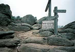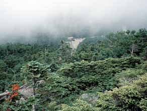 94年 7月21日(木)霧 (バイクで)大弛峠1015…国師ヶ岳1035…1050北奥千丈岳1100…(夢の庭園経由) (2360) 20(△2592) 15 (・2601) 30 …1130大弛峠(バイクで帰宅) (2360) 体力度B 神経度B+ 主に運転で消耗(歩行合計約1時間10分) ◇5万図 金峰山 □筆者参考文献 「東京周辺の山」(山と渓谷社) かなり高い所まで、車で行ける山はほかにもあるでしょうが、日帰り可能でなお且つすいている所はここくらいかも知れません。とにかく、大弛峠までのドライビング(筆者は車がないのでバイクでしたが…)はダートコースなのでかなり神経を使います。しかし、奥秩父の最高点に日帰りで立てるというのは魅力です。 北奥千丈岳は奥秩父最高点。 夢の庭園上部より大弛峠を見下ろす。▲項目索引▲ ◎トップページへ戻る◎ |