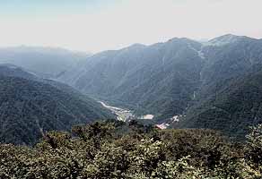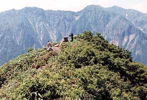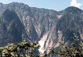 95年 7月29日(土)晴 JR・上越線土合(駅前)900…1145白毛門1230…1445JR・土合 (640) 165 (・1720) 135 体力度B 神経度B-(歩行合計約5時間05分) ◇5万図 四万 越後湯沢 □筆者参考文献 「東京付近の山」(実業之日本社) 白毛門(しらがもん)は、ただひたすら登って、ひたすら下りる山です。筆者はなるべくなら往復コースは避けたいのですが、この山のみだと他に一般的な道がなく、また先へ脚を伸ばすと歩程が2倍以上になって日帰りが困難になるので、やむを得ません。東京からちょっと遠いのですが、鈍行で日帰りできますので、「青春18きっぷ」を使うのにはお得な山です。 土合駅前の道をロープウェイ駅方面に進み、湯桧曽川を渡る手前で右の道へ。ちょっと先で左手に東黒沢を渡る登山道を見つけるのですが、始め見落としてしまい、10分ほどタイムロス。 後は、道なりにひたすら登るだけです。途中、マチガ沢・一ノ倉沢等谷川岳東面のお馴染みの景色を堪能し、やがて森林を抜ければ広々とした展望と、ニッコウキスゲを満喫出来ます。山頂も、360度の大展望で、山座同定に忙しい時間を送ることになります。 ![]() 登り道より、谷川岳東面を望む。左より、マチガ沢・一ノ倉沢・幽ノ沢。 ![]() 登り道より土合駅方面を振り返る。 右上天神平の上にちょこんと吾妻耶山。 登り道より山頂方面を望む。 白毛門山頂。帰りの電車の時刻に合わせて、下ります。 ▲項目索引▲ ◎トップページへ戻る◎ |