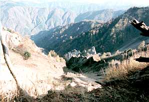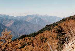 七面山は、登山口の角瀬から1670mの標高差があり、日帰りの山としては、相当にきつい部類に入りますが、今回は、梅ガ島温泉からの縦走と言うことで、標高差は少なくなります。駿河から甲州へという意識で、長大なイメージを持ってしまいがちなこのコースですが、静岡発梅ガ島行き1番バスに乗れればその日のうちに帰京可能なので、東京からだと夜行日帰りコースと言うことになります。もちろん、初日東京を遅く出て、温泉に漬かりながら2拍3日で歩くなどと言う大名登山もいいでしょう。(うらやましい(^^;)) 八紘嶺−七面山間は、南アルプスも見ながら、殆ど人に出会わず、その割に安心して、のんびり歩ける素晴らしい道です。 八紘嶺より笊ヶ岳方面。 七面山少し南の喜望峰より北岳方面。 七面山大ガレを上から覗く。 七面山大ガレより、富士川と富士山。▲項目索引▲ ◎トップページへ戻る◎ |