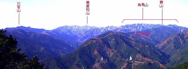 98年12月6日(日)快晴後曇 (西武線・飯能よりバス)原市場中学校BS810…シュウズケ840…ノボット900…1005 (160) 30 (383) 20 (△436) 75 ・548mピーク鉄塔1030…1220子の権現1230…1327西武線・西吾野 110 (ピーク640) 57 (230) 体力度B- 神経度B-(歩行合計約5時間00分) ◇5万図 秩父 □筆者参考文献 「埼玉県の山」(山と渓谷社) このコースは、特に前半は、歩く人が少ないので、静かな山歩きを楽しむことが出来ます。この日は、朝、非常に視界が利いて、あまり展望がなさそうな超低山に登るのは勿体ないような感じ。しかし、前日の雨で、1000mを越える山には、積雪もありそうで、急な予定変更は自重。 今回のコースは、名栗川をはさんで棒ノ折山の対岸にある、548mピークから東南東に延びる尾根の末端から入って、尾根通しに子の権現まで行こうというものです。 飯能発湯ノ沢行きのバスは、殆どが老人のハイカーで、ちょうど座席がふさがるくらいの乗客数でした。殆どの乗客が、川又あるいは名郷まで行くと思われますが、遙か手前の原市場中学校でただ一人下車します。ガイドブックに従い、僅かに戻った交差点、次の二股と左へ入り、2〜300m先の木工所先辺りから、何ヶ所か斜面の墓地へ通じる道があるので、適当に選んで、そのうちの1本に入ります。距離にして20mくらい登ると墓地で、そのわきから藪斜面を直登します。下草というか、低木の葉が前日の雨で濡れていて、その中をもがくように登るのはちょっとやな感じ。数分で支尾根上に出れば、はっきりした道が現れます。無名の超低山は、入山口が迷いやすいという点が意外に手強いので、第1関門突破という感じです。この道に入ると始めは、普通の登りですがシュウズケの手前はまた急登です。 主稜線最初のピークはシュウズケですが、何もない所です。ここから、道は穏やかになり、のんびり歩けますが、空は快晴なのに植林の道は薄暗い雰囲気です。やがて三角点のあるノボット(5万図の周助山。山頂の表示も。)です。その先、南面伐採地に出て、待望の本日初の展望です。有馬山から棒ノ折山を経て高水山まで、お馴染みの山域ですが、それらを真横から迫力をもって眺めることが出来ます。 道は、全体的にゆるい登り基調で続きますが、はっきりした登りになったと思ったら車道が横切っています。 更に登り続けると、右横は奥武蔵高原が望め、振り返れば池袋や新宿の高層ビルが霞んでいました。やがて548mピークですが、その少し先の鉄塔の下が休むには良いでしょう。わずか南方楢抜山寄りは伐採されていて、先程に加えて眺めが大持山方面まで広がリます。前景は、中腹に純白の観音像が光る金比羅尾根がダイナミックですし、奥には蕎麦粒山の三角錐が特に目立ちます。 ガイドブック「埼玉県の山」では、ここから、南下して仁田山峠…楢抜山経由で赤沢BSに下るのが「比較的安全に読図のトレーニングを行えるコース」として紹介されていたのですが、地形図を見るとこの尾根は、伊豆ヶ岳から高畑山を経て下りてくる尾根の延長上である事が解ります。途中少し東へ外れた子の権現へは伊豆ヶ岳からの下山路としてポピュラーなので、是非結びつけてみたく、今回は、子の権現への尾根通しの道を行くことにしました。この先、伊豆ヶ岳…子の権現の道へ子の権現の僅か西で合流するまでの道は、この地域をカバーするガイドブックで筆者手持ちの6〜7種類のどれにも紹介されていません。 道無き道も覚悟していたのですが、この道、始めの方は、電線に沿っているため、その保守に使われるのか、非常に良い道でした。3つ目の鉄塔からは、電線は左に下って行き、その先の先のピークでは道が右に曲がっていきますが、すぐの巻き道で稜線に戻らないと、竹寺へ行ってしまいます。確認のためピークへ戻ってみると、尾根通しに下るのは、藪急斜面でした。 その先、竹寺と小殿BSを結ぶ「関東ふれあいの道」が横切り、そこから南面の巻き道へ入りまた稜線に出て登ると、次のピークには、釣り鐘がありました。 その先の伐採地からは、先ほどまでの眺めに加えて、右側は武甲山・武川岳まで広がります。鐘の音が聞こえます。心ないハイカーの仕業でしょう。 この先、全体的には高度を上げながら、総体的には明るい感じの緩い起伏を行きます。右後ろから竹寺からの道を合わせると、もう関東ふれあいの道となり、伊豆ヶ岳−高畑山からの稜線もよく見えるようになります。この辺まで来ると、時々ハイカーにも出合いますが、前半の閉塞感から比べると、開放的でいい感じです。 やがて、伊豆ヶ岳からの道に合流すると、右へ少々で子の権現。すぐ先の展望ピークに寄って、1時間弱で西吾野に下り着きました。 今回、伊豆ヶ岳から、シュウズケまでよい道が続いていることが判明したので、次回は朝一で伊豆ヶ岳に登り、高畑山…・548mピークと縦走し、今回行かなかった楢抜山経由で赤沢へ下山するコースを歩いてみたいと思います。 548mピーク鉄塔付近