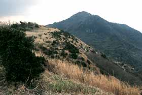 沼津アルプスは、沼津の南東方に連なる超低山で、アルプスとは如何にも大げさですが、鎌倉アルプスに比べれば、かなり山歩きらしいハイキングを楽しむことが出来ます。鷲頭山を主峰とする縦走路の上り下りは、普通の低山の縦走路の上り下りと変わらない標高差なのですが、もともとが低い山なので、一峰ごとに麓近くまで降りているようで気分的には意外にきついです。 沼津駅前からは、左前方に小山が見えます。それが香貫山なので、見ながら狩野川の南側を東進すれば香貫山へは容易に達することが出来ます。麓から暫しの急登で達した頂上付近は、園地となっています。 徳倉山頂と香貫山方面方面。指導標に従い、鷲頭山方面への縦走開始。大きく下った後、横山へは、車道を渡って急登。この後も、急降下と急登を繰り返して、徳倉(とぐら)山から鷲頭山へと続く尾根道は、千金岩の先で右手に海が見下ろせるすばらしく開放的な気分のカヤトの道となります。この辺から正面に見える鷲頭山はとても400m弱とは思えず威圧的と言える程に立派です。 鷲頭山への道。鷲頭山への登りも見たとおりの急登です。鷲頭山から更に尾根を辿り、多比口峠から大平山を往復した後、多比へ下ります。ここは、もう海岸沿いで、ちょっと干物の匂いがします。懐の豊かな人は、帰りがけに沼津周辺で海の幸を堪能するのも良いでしょう。 ▲項目索引▲ ◎トップページへ戻る◎ |