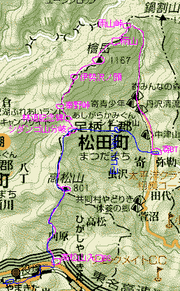 (小田急・新松田よりバス)寄BT835…シダンゴ山935…1120高松山1145…1320JR・山北