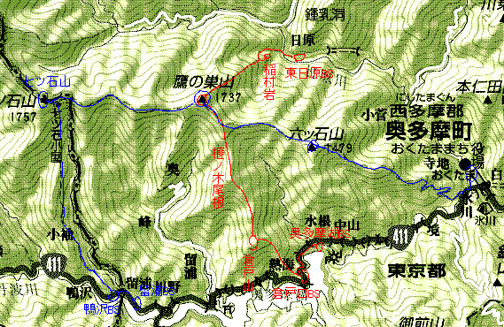 JR・青梅線奥多摩847…1125六ツ石山…1250鷹ノ巣山1300…1412七ツ石山1423