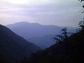 今回ご紹介するコースは、石尾根縦走路として雲取山からの下山によく利用されていますが、日帰りハイクとしては余り歩かれていないようです。やや長いコースですが、交通至便でしかも、道の整備が行き届いているので十分日帰り可能です。日の長い季節なら更に安心(^^)。 仕事の都合で、一足早い夏休みを取ったのですが、梅雨の季節ということで、晴の予報はこの日のみ。しかし、電車が山に近付くに従って曇ってきて、奥多摩駅付近から見上げると、山の中腹より上は雲の中でした(T_T)。鴨沢から歩き始める方が200mほど標高差が稼げますし、帰りのバスの心配も要らないので、本来は逆コースを辿るつもりだったのですが、奥多摩駅で朝のお勤め等していたらバスが出た直後でしたので、奥多摩駅側から歩き始めました。 駅前から青梅街道に出て、日原への道を分けてすぐ絹笠集落方面への道を登り始めます。途中ショートカットがありますが再び車道を辿ります。途中氷川の街が眼下に見下ろせます。やがて、山道に入ります。しばらく登ると霧の中の道になります。下から見上げた雲の中へ入ったのでしょう。しかし、尾根に出てみると北側は晴、南側が霧とはっきり分かれていました。 六ツ石山へは山頂少し手前で縦走路から左へ分岐した道を登ります。山頂は筆者一人でした。上空は晴れ間もあるのですが、雲のため本来の展望はなく、時々雲が薄くなって鷹ノ巣山方面が見える程度でした。先ほどの分岐へ戻り、鷹ノ巣山を目指します。 縦走路は始め六ツ石山の北側を巻きますが、やがて尾根の南側を行きます。尾根上にも道があり、以前、雲取山からの下りでそこを通った事があるのですが、余り通る人がいないためか藪っぽくてちょっと不気味で、草が枯れる季節以外はお勧めできません。それに引き替え南面の道は歩き易いばかりでなく、無駄な上り下りがほとんどなく、緩やかに着実に鷹ノ巣山への標高差を稼いでくれます。倉戸山方面への分岐を過ぎ、少し先で尾根道に入ると、そこは如何にも石尾根らしいのびやかな雰囲気ですがすぐに、鷹ノ巣山山頂直下の急登が始まります。 上空は晴れている鷹ノ巣山からも本来の展望はゼロ。七ツ石山方面が雲の切れ目から見える程度。しかし、流石に人気の山で、こんな天気でも、4〜5人の人がいました。展望もないし、人もいるしで、さっさと次の七ツ石山を目指します。 鷹ノ巣から雲の切れ目の七ツ石山方面七ツ石山への道も、非常に歩き易く、地図の距離感からは2時間くらい掛かりそうですが、1時間半も掛かりませんでした。鴨沢方面への分岐を2ヶ所過ぎると僅かな登りで山頂でしたが、この辺りは本日中、霧が最もひどくて六ツ石・鷹ノ巣の時と違って山頂自体もやや暗く、周りは雲の切れ目さえありません。しかし、山頂は筆者一人で、ここまで意外に歩がはかどって日没の心配も要らない時刻に到着する事が出来、後は下るばかりと言うことで取り敢えずは満足感に浸ります(^^)。 先ほどの分岐から下り始めます、七ツ石小屋のわきを通ってしばらくすると傾斜も緩み、だらだらと楽な下り道です。雲の下に出ると、鹿倉山から続く仏舎利塔の尾根の向こうに三頭山方面も見えてきました。小袖の集落を左に見て、下界にかなり近付いたころ一旦車道に出ますが、300m程歩いて小袖乗越の先で再び山道に入りますと鴨沢BSはすぐです。案の定奥多摩駅へのバスは2時間以上ありません。仕方なく、留浦BSまで10分弱ほど歩きましたが、留浦BSからはちょうど出発まぎわのバスに乗ることが出来ました。 鴨沢への下り道から三頭山方面▲項目索引▲ ◎トップページへ戻る◎ |