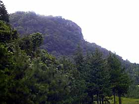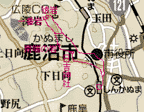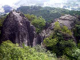 1999年10月9日(土)晴 東武線・新鹿沼1015…日吉神社1045…1100南端の露岩1115…二番岩1200…1225一番岩1236… (140) 30 (180) 15 (260) 45(300) 25 (△328) 6 1243猿岩1255…下山道分岐1335…T字路1343…1410猿岩基部1415…T字路1427…1502新鹿沼 (310) 40 (230) 5 (160) 27 (260) 12 (160) 35 (140) 体力度B 神経度B+(歩行合計約4時間30分 猿岩基部往復を除けば約3時間40分) ◇5万図 鹿沼 □筆者参考文献 「栃木の山120」(宇都宮ハイキングクラブ) 夏の日、広陵カントリークラブでプレイしたときクラブハウス付近から、小振りながら格好いい岩山が目に入りました。後に「栃木の山120」で、そのまんま「岩山」という名で、ハイキングコースも通っている事を知り、夏が終わるのを待って出かけてきました。五万図上では僅かな地膨れに過ぎないような小さな山ですが、稜線上は露岩の連続で、期待通り楽しみの凝縮された、短くて密度の高いハイキングを堪能する事が出来ました。 岩山は、大きく3つのブロックからなり、それらのトップ地点は南からそれぞれ、三番岩・二番岩・一番岩(全体の頂上。328.3m三角点。)と呼ばれているようです。 新鹿沼から古峰ヶ原方面へのバス通りを行きます。勿論、時間が合えば鹿沼西中入口BSまで利用出来ます。バス停のちょっと手前の右折路奥に階段らしきものが見えますので、そちらへ行き、登ると、ハイキングコース始点の日吉神社でした。車道を神社の左へ僅かで、ハイキングコースの山道が右へ分岐しています。 初めは、ササも出た樹林帯の道ですが、10分も登ると、露岩が出てきて期待感が膨らみます。ここから先はずっと露岩帯ですが、傾斜のきついところには全てステップが刻まれてあるので、道さえ誤らなければ一般ハイカーでも技術的にさほど問題となる箇所はありません。地形図で見た距離の感じより随分余分に時間がかかりますが、あせらず、のんびり楽しみましょう。稜線に辿り着くと、2つの岩の鞍部に登ります。右手(南端)の岩は、鞍部から向かって左寄りのメートは傾斜がきつく左が切れ落ちていてボルトなど打ち込んであって不気味なので途中で引き返し、右寄りの緩斜面から登ると岩頭からは大展望が広がります。麓から遠くへと広がる下界の様子はまるで箱庭のようです。鞍部の左(ひとつ北)の岩も、ステップが刻まれていますが、傾斜が70゜以上はありそうなのでビビって割愛しました。 最初の展望台よりさっき登った南端の岩(右)。稜線を僅かに登って左少しそれた所はベンチのある展望台となっています。この先の尾根道は、主に、次から次へと出てくる岩(さっきの岩同様、比高は数m〜十数m)の隙間を縫って行き、時々岩を乗り越えるような道です。時間と体力を勘案しつつ、気に入った岩でボルダリングのまねごとをしてみるのもいいでしょう。筆者も、いくつか登ってみましたが、残念ながら多くは樹木のため先ほどの南端の岩のような展望はなさそうでした。コース中いくつか出てくる鉄梯子は全く不要で、使わずに横を登ります。(雨後等には必要でしょうが、日帰りの山ですから、そんな悪条件になりそうな時は始めから入山しません(^^)。) 三番岩は気付かずに通り過ぎ、やがて、ややはっきりした鞍部への下りから、右手に広陵CCが見えてきます。稜線上のほぼ中間点・二番岩からは、これから向かう一番岩方面や古賀志山がいい感じで眺められます。一番岩との鞍部からは、ゴルフ場方面へのエスケープルートがあるはずでしたが、発見できず、一番岩へ最後の急登をします。 一番岩は、さすがに頂上。大展望が広がります。古賀志山方面はやや樹木にふさがれますがほぼ360度と言ってもいいでしょう。この日は、ややモヤっていて、前日光もぼやけている状況でしたが、もう少し季節が進んでからまた来たい感じです。 一番岩から稜線を少し進めば、猿岩です。正面に広陵CCのクラブハウスが確認出来、足下にはフェアウエイが広がります。ゴルフ場から目立っていた岩壁は、ここであることが確認出来ました。当然、足下は切れ落ちていますがハイキングコースのルートは、ここからぶら下がるクサリを伝って下山する事になっています。しかし、この日ハイキングコースへ入った所に「崩落のため通行禁止」とありました。上からのぞき込むと1本目のクサリは10m以上ありそうで、始めは60゜以上の傾斜ながら足場はあるものの、中間部から岩がのっぺりしていて腕力と靴のフリクション(摩擦力)が頼りになりそうです。しかも、下部の方は傾斜がきつく(おそらく70゜以上)なっていて様子がわかりません。勿論、ガイドブックによれば合計50m・7本あるはずの2本目以降のクサリも見えません。「通行禁止」の原因箇所は確認出来ず、迷いましたが、結局、冒険心よりビビり心の方が勝って、引き返すことにしました(^^;)。 帰り道でも例のエスケープルートは発見できず、たぶん気がつかずに二番岩も過ぎた鞍部でようやく「下山路」の標識発見。ちょっと薄暗くて荒れた感じの道なので皮軍手を