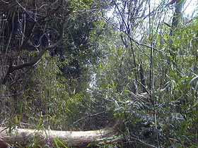 大野貯水池と言えば扇山の下りに寄っていく所として定番ですが、ここと梁川の間には小さな峰が続いていて、東京方面から朝遅く家を出ても、余裕を持って歩けるコースとなっています。今回のコースは、笹や倒木が多い道ですが、迷いやすい所もなく歩程も短いので、冬季に限りますが、ハイキングを始めて少し経って遊歩道のような道ばかりでは物足りなくなった人の藪山入門コースとしてもお勧めです。 梁川駅の駅前から国道に降りずにすぐ線路をくぐり、北側へ出ます。この辺は、東京近郊の鉄道沿線としては非常に山深い風情のある所です。線路沿いの道を西へ進み、鉄道の上下線が離れていく辺りに右手へ登って行く車道があるのでそちらへ。すぐに車道は終わり、笹の出た山道はちょっと回り込んだあとすぐ尾根に取り付きます。 始めの尾根道から笹や倒木が目立つ。ひとしきり登ったあとやや緩やかな起伏を行き、右下に駅前の橋が見える頃、南面を巻く道と分かれて尾根道を登ると「天王山(430)」という札のあるピークですが、ここの標高は430mではなく480mくらいです。次のピークのすぐ左を通過し、やや本格的な登りをひと頑張りすると寺山に着きます。 寺山から桂川流域、四方津方面の眺め。寺山は東面が絶壁になっています。南面前道志側は立木越しになりますが、北面から東面は伐採されていて、標高からは想像できない程の見事な眺めです。しかし、これから先の下り道は如何にもきつそうな雰囲気で緊張感が高まります。十分眺めを楽しんだら、防寒目的の軍手を保護目的の皮軍手に換えていざ北へ、大月市と上野原町の境界尾根を目指して出発。 始めの坂も思った通り急で最後の3m程は掴む物を探すのに苦労します。痩せた岩稜を過ぎ、次の下りはざらざらと滑りやすい土の道。植林のヒノキに捕まりながら下れば、迷い込むのではないかと心配された東への尾根の分岐点はいつの間にか通過していました。やがて登りに転じれば境界尾根上の小ピークへ。ここから東へ辿れば、南面は先程分かれた東方への尾根はこちらより高いので視界を塞いで閉塞感。しかしやがて左方下に南米沢(なめざわ)集落が見えて来て、雑木林が植林に変って下り着くのは、妙に赤い祠のある峠。右新倉、左南米沢ですが、右は笹藪がひどそう。ここから、尾根道を登り返せば4等三角点のある御春(おはんな)山です。ここは如何にも寂境という感じのピークで、立木の垣間に寺山を振り返れば、その先の倉岳山が立派です。 この先ふたつ目、御春山とほぼ同じ高さのピークを過ぎると本格的な下りとなります。極端に急傾斜ではないのですが、核心部を過ぎた安堵感から気が緩んだのか、落ち葉で滑ってコケました(^^;)。やがて、大野貯水池を見下ろす四阿(大野貯水池展望台)に着きますので、山を平らに削ってしまった四方津の造成地や、貯水池越しに雨降山〜権現山等を眺めながら一休み。 四阿からは一気下り、堰堤を渡り終われば広場の先の交差点には大野貯水池BSがありますが、バスの本数は少なく、この時は2時間半も後です。でも車道を四方津駅まで歩いても25分も掛かりませんでした。 ▲項目索引▲ ◎トップページへ戻る◎ |