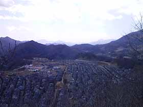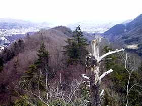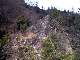 2001年 3月10日(日)晴時々曇 (JR・四方津駅前より)斜行エレベータ上1130…1150小岩峰1202…1217御前山1230… (320) 20 (410) 15 (△461) 75 貯水池1345…国道20号1400…1423上野原 (290) 15 (□206) 23 (180) 体力度A 神経度B (歩行合計約2時間40分) ◇5万図 上野原 ◇2.5万図 上野原 □筆者参考文献 「中央線の山を歩く」(藤井寿夫) 東京近辺で御前山というと、奥多摩にある大きな山を思い浮かべますが、2.5万図の「上野原」に小さな御前山が3つもあり、そのうち、中央線・四方津−上野原間の北側沿線のものが今回登った御前山です。 交通至便な場所にある短いコースで、体力もあまり使わずに済みますが、明るい展望に藪と岩がちょっぴりあって、それなりの手応えもあり、予想以上に楽しめました。草が枯れた時期が好ましく、それでも皮軍手必携です。 実は、2月にも山頂までは行ったのですが、快晴ながら20〜30cmの積雪があって、その時は東側への下りでビビって引き返して来たのでした。 四方津駅前から案内に従って国道を跨ぎ、斜行エレベータ「コモアブリッジ」に便乗させてもせらうと、ケーブルカーのように標高差70mほどを登って、天上の楽園のような雰囲気のある住宅地「コモア四方津」の一角に着きます。 前方へ進めば東西に延びるメイン道路に出ますので、右(東)へ。右手が小学校の三差路では、やや下って行く直進路より、左へ曲りたくなりますがそのまま直進します。少し行くと左手食事処の先に左折路があり、入って正面右手、鉄製の階段から登山道が始まります。 すいすい登って行くと鞍部で右が御前山、左は小岩峰への分岐になりますので、左折して4分ほどの小岩峰に寄って行きます。ここは、非常に眺めの良いところで、西は足下にコモアの住宅の屋根が並び、寺山から御春山の奥に倉岳山や扇山が近く、三つ峠から滝子山にかけてが遠く望まれます。東には勿論これから行く御前山。 小岩峰から西方を望む。分岐に戻り御前山への登り。山頂にアンテナがあるためか、いい道が北側から巻き登って行きますが、今日は雪もないので尾根通しの道に入ってみました。すると、すぐに道はなくなり、笹藪に(^^;)。やや左目に笹の薄そうな所を選んで登って行くと、山頂の僅か手前で北側から巻いて来た道に合流しました。 頂稜部は東西に細長く、三角点はまず行き着く西端にありますが、中央あるいはアンテナのある東端ピークの方が僅かに高そうです。この辺から見ると笹尾根ばかりか権現山までのっぺり平坦に見えて迫力がありません。 アンテナピークの左(北東)角から急降下し始めます。いよいよここからが本日の核心部です。この下りにはなぜか適当な位置に手掛かりとになる立木が見つかりにくくて苦労します。10分ほど掛けて慎重に下りきると、いい感じの痩せ尾根となりますが、小岩頭に登り着くとその先に道がありません。僅か手前から右手に足下の悪い巻道があるので、それへ入ってみると稜線に戻る気配がなく、どんどん南へ下ってしまうので、あわてて引き返しました。戻ってよく見ると左手に下降路がありました。これも急降下です。 次の露岩頭は稜線上の傾斜は緩めですが痩せており、風もあったのでビビって右(南)斜面を巻きました。風が穏やかでバランスに自信があれば、稜線上の方が安全かも知れません。 ビビって南(写真左側)斜面を巻いた露岩頭を振返る。3つ目の露岩頭は、幅が広い稜線上を直登します。このピークからは、この先辿る尾根筋がよく見えます。ここの下りも急です。 3つ目の岩頭からこの先辿る尾根を見る。次のピークから一段下ると伐採地になっていて縦位置の国道20号の奥に倉岳山がいい形に見え、目の前の高柄山は大きく見えます。 伐採地より倉岳山方面。更に少し下ればこの道以外の4本は広い5差路となっているので、右正面「八ツ木水槽」と表示された方へ行くとすぐに貯水池、更には神社があり、ここからも広い道には入らず正面の細い尾根道に入ります。いい感じの尾根道なのですが、10分も行かないうちに終了。右手の里道に出ざるを得なくなります。 尾根上の集落の中を通り、道なりに下って行くと国道20号に出ます。ここから上野原駅へは、国道を横切って正面に道を求めるのが正解だったようなのですが、何も考えずに国道を左へ辿って中央線を跨ぎ、その先で右折して今度は中央線下をくぐり、橋を渡ってすぐ左折して中央線下の小トンネルをまたくぐり、と3回も中央線と交差する遠回りなルートを辿ってしまいました(^^;)。 ▲項目索引▲ ◎トップページへ戻る◎ |