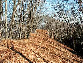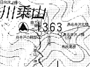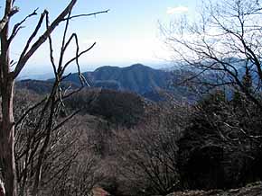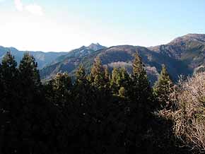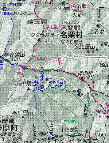 2001年12月 9(日)快晴 (西武秩父入口BSより秩父鉄道バスで)浦山大日堂BT848…917新秩父線60号鉄塔925… (460) 29 (670) 110 1135仙元峠1145…1159蕎麦粒山1205…1245日向沢ノ峰1302…踊平1325…狼住所1402… (1450) 14 (△1473) 40 (1356) 23 37(1260) (真名井沢北稜トライ)…狼住所1631…1833JR・鳩ノ巣 149 122 今回の結果からは 体力度B+ 神経度C(歩行合計約9時間00分) ※真名井沢北稜トライしていなければ多分 体力度B 神経度A+(歩行合計約6時間30分) ◇五万図 秩父・五日市 □筆者参考文献 「埼玉県の山」(堀江昇他) 奥多摩と奥武蔵を分ける都県境尾根にある日向沢ノ峰(ひなたざわのうら)からは非常に素晴らしい景色が楽しめます。北面は秩父盆地方面を除いて立木に遮られますが、南面の展望は最高です。富士山を中心とした構図は500円札で有名な雁ヶ腹摺山のそれにも、勝るとも劣らないでしょう。 特筆すべきは単にたくさんの山々が見渡せるだけでなく、公共交通利用東京日帰り圏にしては珍しいくらい山深い感じのする景色が楽しめるところなのです。これだけ好展望の南面の視界の中で目に入る人工建造物は下方の地味な林道だけ。建物は勿論、送電線(これがないのは意外に珍しい)もダムも仏像(^^)もありません。比較的近くの山に囲まれて閉塞感を伴う山深さを感じる所は結構ありますが、広く遠近感もある展望でありながらこれだけ山深さを感じさせる所は東京日帰り圏には他に殆どないでしょう。 日向沢ノ峰には過去3回行った事があったのですが、何れも縦走の中頃と言うことで時間的な焦りもあり、通過点のような扱いをしてしまっていました。今回はここをメインに考え、登路としては、静けさとちょっびり冒険を求めて、ガイドブックでもバリエーション的扱いをされることが多い仙元尾根を選びました。日向沢ノ峰で充分景色を堪能した後、短くて一番交通アクセスの良い大根(おおね)ノ山ノ神経由で速やかに下ろうという算段でしたが…(^^;)。 ところで、五万図の山名注記は複数のガイドブックや山地図で共通に使われているものと異なっていたり、どのガイドブック等にも載ってる山が無名だったりすることが多かったのですが、市井の声も少しは天に届いているようで、最近(ハイカーから見て)改善傾向です。現在筆者手持ちの5万図「秩父」は、昭和44年版、昭和46年版、昭和55年版、平成元年版、平成10年版の5葉ですが、昭和44年版になかった蕎麦粒山、有馬山、日向沢ノ峰が昭和46年版には出現。そして、平成10年版になって(平成元年版〜平成10年版間で筆者が持っていない版での可能性あり(^^;))天目山、棒ノ嶺、川乗山の注記がそれぞれ天目山(三ツドッケ)、棒ノ嶺(棒ノ折山)、川苔山になりました。「川海苔が採れたから川苔山」という由来話は知っていましたが、5万図はこれまでずっと頑強に「川乗山」だったため、最近での趨勢は「川乗山」になっていたところでしたので意外な感じがしました(^^;)。 秩父鉄道・秩父駅を8時に出る金倉橋行バス(これに乗れなければタクシー利用)に西武秩父駅入口で乗るために、西武線・池袋601発準急飯能行に乗ります。飯能で703発西武秩父行に接続、西武秩父には752着。駅前を直進してR140に出た右手に秩父鉄道バス・西武秩父駅入口BSがあります。バス停標識を見るとバスは809発で浦山大日堂行でした。ダム完成で延長されたのでしょうか、予定していた金倉橋から約15分の車道歩きがなくなりました(^^)。5分ほど遅れて来たバスはマイクロバスで、終点まで乗客は筆者1人でした。 始めR140沿いに走っていたバスは左へ分岐し、浦山ダム付近で一気に高度を上げてダム湖沿いに進んで行きます。湖が終わり、終点近くなると道は細くなり、バスは民家の軒先や立木をかすめるようにして進みます。終点の浦山大日堂BT横には清潔な水洗トイレがありました。 少し戻って赤い橋を対岸に渡り左へ少々で大日堂。その裏手、道なりに左へ行くと沢へ向かってしまいます。注意書きに促されて戻って来ると、コンクリート垣の右端が階段になっていて指導標もありますのでそこから登って行きます。 ジグザクに急登して一汗かかされる頃尾根に取付きますが、そこの右手の送電鉄塔(新秩父線60号)下で一休み。ここは、展望の良いところです。ここからの尾根道は、59号、58号、57号の各鉄塔下を通り、時々右手に三ツドッケ、大平山方面、左手に大持山、有馬山を見ながら進む穏やかな道で、気分の良いところです。 新秩父線60号鉄塔より三ツドッケ方面。その後、尾根の左手を行く山腹道となり、やや外傾して谷方面にずり落ちそうな箇所もありましたが、それよりも猟犬を連れ、銃を持ったハンターに出合ったことの方がビビりました(^^;)。山腹道に飽きた頃、右、左、右と登って再び尾根に取付きました。 少し和んだ後、緩急何段か繰り返す本格的な登りが始まります。この途中で右手立木越し見る三ツドッケは5つくらいのピークが鋸歯状に並んで精悍な面構えで、撮影しようと思いましたが、「もう少し