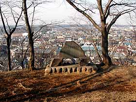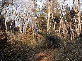 2002年 2月 2日(土)晴 西武線・入間市1414…1438高倉寺1445…アンテナ1513…八坂神社1531…1549仏子 (90) 24 (100) 28 (150) 18 (160) 18 (90) 体力度A 神経度A (歩行合計約1時間30分) ◇5万図 川越 青梅 □筆者参考文献 「武蔵野と奥武蔵」(奥武蔵研究会) この日、飯能の西、竜涯山〜柏木山を歩いたのですが、そちらのコースは、出発前には道があるかどうかはっきりしなかったので、早期に退散した場合のサブメニューとして、このコースを考えていました。結局、竜涯山〜柏木山は無事歩ききったのですが、まだ時間もあるので、池袋へ戻る西武線電車を入間市で下車して、このコースも歩いてみることにしました。 金子丘陵は、桜山展望台のある加治丘陵の東側一帯の丘陵地で、北側以外は殆ど市街化してしまっており、今回のコースも山歩きと言うよりは町歩きです(^^;)。 入間市駅からまず、高倉寺(こうそうじ)を目指します。駅周辺は車道が交錯していて手持ちのガイドブック「武蔵野と奥武蔵」(1969年版)では道が分かりません。しかし、5万図で入間市の約1km西、線路から200mくらい南にあるのが判りますので、取り敢ずなるべく線路沿いに西へ行こうとしました。ところが、すぐに高倉寺を示す指導標を発見し、それが南を指すものですから、線路から離れて南下。しかし右(西)へ曲がる事を示す指導標を見付けられないまま、500mくらい南へ行ってしまい、これじゃまずいので適当に右折したら今度は川沿いに北上するしかなくなったり、訳が解らなくなってしまいました。仕方なく、地元の人に道を尋ねてR16をくぐり、後は適当に道を拾って何とか高倉寺に付くことが出来ました。まあ、「道に迷う事を気にしないのは武蔵野を歩く鉄則」(?)ですから(^^;)。 高倉寺は観音堂が国指定重要文化財であるなど、立派なお寺ですが、筆者の関心は裏にある梵天山。ガイドブックによれば「筑波、日光の山々を遠望し、奥武蔵の山脈がパノラマのように眺められる。」という展望台なのです。今日はあまり遠望の利く天候ではありませんが、奥武蔵くらいは何とか見える事を期待して、唐様建築の見学もそこそこに奥へ。最後の建物の裏へ回ります。しかし、そこにあるのは広大な墓地のみ。多分、昔はマウンドになっていたのを墓地の造成で台地状にならしてしまったのでしょう。寺全体が高台にあるので、樹間からそれなりに街の屋根は望めますが、筑波日光方面なんて、近くのビルディングの方がここより高いのでどんなに遠望の利く日でも見えるはずはありません(T_T)。失意の内に西側の車道へ下ります。 梵天山の明治天皇行幸記念碑。車道の西側は金子丘陵ですが、直接入る道はないのか、ガイドブックは車道を北へ行き、踏切を渡り、線路の北側の県道を少し西進した後、再び踏み切りを渡って南へ登るように指示していますので、そのようにしました。 丘陵への登り道のすぐ右側は自動車専用道路が平行していて、始め高架だったのがだいぶ登ったところでは切り通し状に貫いていますが、陸橋があってそれを跨ぐ事が出来ました。陸橋を渡ってすぐ、送電鉄塔の脇から山道になります。ちょっと入ると如何にも武蔵野の雑木林という感じでいい気分。しかし、すぐに植林が多くなります。 金子丘陵の雑木林。ガイドブックでは京塚(土饅頭)や五輪塔があるはずですが、それらを発見することが出来ず、代わりに(?)ツーカーセルラーのアンテナ(高さ40m)がありました。アンテナのところで2分する道を右(西)へ行くと、すぐに老人医療施設のようなものがあり、そこからは市街地になってしまいました。西武線からは丘陵の北側を見るので、林が多く見えますが、丘陵の中央や南側に比べて日当たりが悪いので市街化しなかったのでしょうか。 市街地になっても丘陵は丘陵ですから、折角なので出来るだけ高い所を西に歩いて行きます。巨大なアパートが右手にあったりして、やがて道は突き当たってしまいます。ここから右へ下れば仏子駅も近い筈ですが、左を見ると、そう遠くない所にここより高い場所があるではありませんか。 早速行ってみるとそこの頂上は神社でした。八坂神社と浅間神社が併設されています。ここから西側を見ると足下を南北に走る車道の向う側には武蔵野音大も見え、そちらが加治丘陵であることが分ります。 眼下の車道へは、神社の前(西側)の道を南へ下って合流します。そして、この道を神社の下へ戻るように北へ下って行きますが、加治丘陵へ行ったときも利用した道で、5万図に「金子坂」の注記があります。やがて右手にある、モーテルのような形をした国民宿舎の入口を過ぎれば仏子駅はすぐです。 ▲項目索引▲ ◎トップページへ戻る◎ |