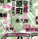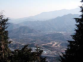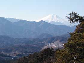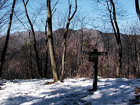 2002年12月29日(日)晴 (JR・中央線上野原よりバス)甲東小学校前BS1010…1052瀬淵山1109… (300) 42 (560) 69 1218高指山1229…1244不老山1256…1318山ノ神1324…1349不老下BT(バスで上野原へ) (・911) 15 (△839) 22 (590) 25 (340) 体力度A+ 神経度B- (歩行合計約3時間15分) ◇2.5万図 上野原 □筆者参考文献 「朝日新聞夕刊「マリオン」山便り 甲東三山」(高見澤洋子)中央線・鳥沢の北にある扇山は非常に賑わっていますがその奥の権現山もタクシーを使えばアクセスは悪くなく、近年、ハイカーに結構ポピュラーな山となっています。その権現山から東に延びる尾根上の雨降山(・1177)から南に分岐する尾根はゴウド山(・887)の南で東寄りに向きを変え、再び高まった911m標高点ピークが高指山です。高指山から尾根は分岐して南に不老山、南東の末端に瀬淵山があり、これらをまとめて甲東三山と称します。 高指山−不老山−不老下BTは、権現山の下山路としてガイドブックにもよく紹介されていて、とりたてて困難もなさそうなので、甲東小学校前−瀬淵山−高指山の区間が不明な部分が大きく、本日のハイライトと言うことになります(^^)。 朝、自宅でぐずぐずしていたため、甲東小学校前バス停に着いたのは10時を回っていました。帰りは一つ奥の終点・不老下から乗る予定なので、バス停標識に掲示されている時刻表を見るとこの日甲東小学校前14時20分の次は16時台となっています。参考文献が示す歩行時間は約4時間。従って、一つ手前の不老下BTには14時15分頃までに下り着くのが良さそうで、もし乗り遅れたら、−大野貯水池−四方津と歩くつもりです。 小学校の角へ行くと古びた指導標が「右 桑久保東地区」を示しています。バス停周辺は丘陵地の谷にあるので随分山深い感じでしたが、車道をくねくね登って行くと視界が開けてきて、近くを通る中央道の高架が同じくらいの高さに見えます。 桑久保東地区の入口より。集落の後ろに瀬淵山やがて、正面に瀬淵山も見える二股から右に桑久保東地区の集落へ入って行きますが、どんどん歩いて行くと左(西)へ逸れていってしまいます。参考文献が示す瀬淵登山口の神社の鳥居はもっと右(東)の筈なので、たまたま出合った現地の住民に神社への道を尋ねると、すぐ目の前右手の小径へ入ればいいとのことで、その道を行ってみると一段上の車道に出て右へ僅かで鳥居の石段を上がった上に着きました。参考文献が示す通り、ブランコの右手から山道が始まりました。 初め、山腹を右へ巻き登り、その後ジグザグに登って行きます。一部、倒木や藪(カヤト?)の被ったところもありますが、道自体は山頂まで非常にしっかりしています。それもその筈、山頂には奥宮らしき建物や大きな石碑がありました。 瀬淵山より富士山。山頂からは、若干木に邪魔されながらもコモア四方津、四方津御前山、中央道談合坂下り線SAの向こうに前道志、丹沢等、南面の展望が開け、視界の右端には真白き富士山も望まれます。頂稜を僅かに下りながら東へ50〜60mくらい行くと好もしい雑木林の道の上に553.5mの三角点が見えました。 瀬淵山から高指山へ続く尾根は、地形図で見る通り、つながり方が不自然なので、頂稜部西端から、道也に行かず、注意深く見極めてやや道らしくない右手の尾根を下ります。鞍部からは、道もはっきりしますが、巻き道も多数現れるので、とにかく尾根に沿っていくように心がけました。 途中、深さ・幅とも3mくらいの小さな切戸状の手前で右へ巻き下ります。この巻き道を直進して右手山腹を行くと和見方面ですが、切り通状を左へ抜けますと指導標があり、尾根のやや左側へ行くのがルートです。 この後、念のため尾根通しを行ったのですが、やがて登り着いた鞍部で、本日最初で最後に出合った登山者が「不老山から来た」とのことなので、そこからは、その人が来た、尾根を左へ外れる明瞭な道を行きました。しかし、「不老山から来た」というだけでは、必ずしも尾根通しに高指山も通ったと言うことになりませんので、どんどん尾根から外れて行く道を歩きながら、もしかしたらこの道は高指山を巻いて不老山へ直結しているのではないかとの不安も浮かびました。が、やがて道は右手へジグザグに山腹を登って尾根に合しました(^^)。 尾根の地形が若干高原状に広まって、肩のようなピークからひと登りで、本日の最高点、高指山です。樹間から雨降山〜権現山方面が大きく望まれます。 高指山山頂。樹間から雨降山方面。不老山へはひとしきり下った後、小さな登降を繰り返します。一瞬、「これは先が思いやられる」と思いますが、その矢先、高指山から15分ほどであっけなく不老山の山頂に着いてしまいます。 不老山よりコモア四方津、高柄山、丹沢主脈。不老山の山頂は北西側の樹林の中、何故か標識類が林立し、東から南にかけては立木越しに、東丹沢仏果山塊、丹沢主脈、富士山等の展望が得られますが、午後なので、モヤもやって来たのと逆光気味で、墨絵風と言うか、