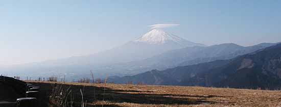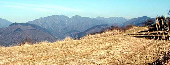 2004年1月7日(火)曇時々晴後快晴 JR・山北941…大野山入口BS959…1035共和小学校1040…1144大野山1215…1350谷峨 (120) 18 (140) 36 (340) 64 (△723) 95 (160) 体力度A+ 神経度A (歩行合計約3時間40分) ◇5万図 秦野 □筆者参考文献 「神奈川県の山」(広島三郎)筆者が登ったのは3度目になりますが、とにかくお手軽に登れて、途中は雑木の中、結構山深い気分も味わえ、山頂付近一帯は牧場のためのびのびとした好展望、と非常にお買い得な山です。 山北駅前から左(西)へ道也に行けば、20分ほどで短いトンネルの先の大野山入口BS。ここまで、小田急・新松田からバスもありそうです。ここを右折して谷沿いの道に入って行くと、谷の奥に山上の牧草地の一角が望まれます。東名高速をくぐって少し先の分岐には指導標があり、左右どちらも「大野山 1時間40分」となっていて、前回どちらを行ったかの記憶もないので迷いましたが、今回は、右へ急に登って行く方を採りました。 にょろにょろとカーブしながら登って行ったあと、住宅地の中を右左折しますが、指導標が完備しているので迷うことはありません。やがて、共和小学校の角で左から登って来ている道に突き当たりますので、右折して行くことになりますが、富士山も見えるので小休止して軽く腹ごしらえ(^^;)。ただし、地形図を見ても、遙か彼方に見える牧場を眺めても、まだまだほんの序の口に過ぎないことが解りますので、ここでいつまでものんびりしている訳にはいきません。 小径に入れば露岩や雑木が嬉しい。共和小から7分ほど行くと右手に登山口があり、そこへ入れば、いよいよ小径となります。露岩や雑木の道は、山歩きの楽しさを感じさせてくれます。しかし、やがて牧場が間近く見えてきた頃、いやな槌音が響きます。現場付近には「治山」と書いてありましたが、どうせ土木業者に金をばらまくための「景気対策」でしょ。 牧草地の縁の登りから箱根連山。やがて、牧草地の左縁を登り切れば、尾根上からは丹沢主稜が、アルプスの高山のような迫力で望まれます。残念ながら、尾根の道は車道となっており、丹沢主稜のパノラマを撮影中、土木業者の車に脅かされました(T_T)。車道を左へ山頂を目指せば、左手は相模湾から箱根連山が望まれ、広い山頂付近では富士山や、丹沢湖の奥に大室山、更に右へ丹沢主稜やそこから南へ派生する山々が望まれます。三角点は、山頂左奥の林の中にあるはずですが、林の周りには有刺鉄線が張り巡らされており、今回は訪問を断念。 ![]() 山頂の西より、丹沢主稜。 ![]() 同地より、富士山。 下りは、道也に西へ行った後、左折して南へ下って行きます。上部は牧草地のため眼下には東名高速が走る下界が箱庭のように望まれ、遠景は箱根−愛鷹−富士の眺めか素晴らしいのですが、遠くばかり見ず、足下にも注意しないと(^^;)。この道も工事人とパワーショベル等入って拡張を行っていましたが、必要性は大いに疑問。やはり「景気対策」でしょう(T_T)。 更に下って樹林帯に入っても、園地だのが作られていました。この財政難の時代に整備と言う名の破壊にお金を使うのはいい加減にして欲しいものです。 東名都夫良野トンネル出口下を通って、左へ折り返した後、酒匂川を鉄骨+木製の橋で渡り、更に跨線橋で線路を渡って谷峨駅に着きました。今回、大野山から谷峨駅まで1時間35分かかっていますが、普通は1時間20分くらいで十分です。今回、山北駅で調べた列車時刻(谷峨−山北間は5分と見た)が、1400くらいの筈で、1時間45分くらいありましたし、下りの途中睡魔に襲われたりしたので、列車発車までの残り時間を見ながら休み休み下ったのです。 ▲項目索引▲ ◎トップページへ戻る◎ |