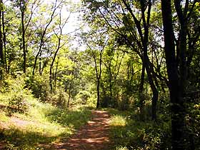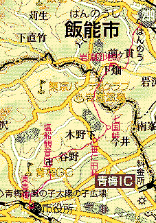 2004年5月15日(土)晴 JR・東青梅942…1020塩船観音上部1025…笹仁田峠1100…1110七国峠1130… (190) 38 (220) 35 (・179) 10 (△226) 15 1145山道分岐(山道少し往復)1150…岩淵団地BS1230…1300飯能駅南口前 (△162) 40 (110) 30 (100) 体力度A 神経度A+ (歩行合計約3時間05分) ◇5万図 八王子 □筆者参考文献 「東京都の山」(岩波和俊)この日は、「翌日から曇や雨が続く貴重な晴れの日」との天気予報でしたが、前日(というか連日(^^;))の酒の影響や痛風の名残で普通のコースを踏破する体力的自信がなく、迷っているうちに時間も経ってしまってどのみち長いコースは無理となり、以前2度行ったことのある「霞丘陵コースハイキングコース」に行きました。 東青梅駅からはまず塩船観音を目指します。方角は北北東ですが、始め北へ向かう道がないので少し東進して左折、正面の丘陵に墓地を見ながら「市役所六万通り」を北上しますが、光明寺の前で横道に突き当たってしまいます。このバス通りを東へ進むと「東青梅6丁目東」の交差点でようやく左折出来ますので再び北上。ここもバス通りですが、非常に寺院を多くの見かけたのに、なかなか塩船観音が近いことを示す標識が出てこなくて不安になってきます。しかし、やがて左手ゲートボールグラウンドの手前左折路に塩船観音入口の看板がありました。ここへ入り、緩く登って低い尾根を一つ乗っ越して緩く下って行くと、歩き出してから30分ほどで塩船観音の山門に着きます。 境内に入り、右手の尾根に付けられた遊歩道を登って行くと、左下の浅い谷はスタジアム状で、ツツジ園となっていますが、残念ながら花は終わってしまったようです。最上部まで登ると展望台になっていて、ツツジ園を含めた境内やその先の街並みを見下ろす事が出来ます。 展望台より境内を見下ろす。その先には、ツツジの季節には入園料を取っていたゲートらしき場所があり、その先からいよいよハイキングコースが右(東)へ続いて行きます。左手ゴルフ場の奥に奥武蔵の山もちらちら見える快適な道です。1回目の時は参考書を確認しながら行ったので、笹仁田峠まで丘陵上を行けたのですが、前回は「2回目だから」とタカをくくっていたら、すぐ先のゴルフ場が見えなくなって荒れ地っぽくなった辺りで南麓(塩船観音の門のやや東)にコースアウトしてしまい、笹仁田峠までは裾を回って行くハメになった経験があるので、「今回は慎重に道を選びながら」と思っていたら、コースが整備され、指導標も完備して、間違いようがなくなっていました(^^;)。 霞丘陵ハイキングコースを行く。雑木の山道からやがて舗装道に出るので右へ行くと「愛宕山グラウンド」があり、その手前左の舗装道へ車止めをすり抜けて入ります。この辺り一帯は立正佼成会の私有地ですが、ハイキングコースの徒歩での通行は問題ないようです。この道は幅8mほどもあって、桜並木があり、1回目は開花期に通ったのですが、見事な咲きっぷりだったのを憶えています。 再び車止めを通り、ここもまだ立正佼成会の敷地内ですが、茶畑の前で2分する道を右へ300mほど行けば門から一般道へ出られます。 この道路上すぐ左手が笹仁田峠ですが、七国峠への道は横断したやや右手から続いています。この辺りも立正佼成会の土地のようです。ひとしきり登ったあと尾根上のほぼ平坦な道となり、広場のような交差点へ着きます。この辺りが七国峠だと思うですが、目の前の小ピークに三角点があるので、土の露出した急斜面を登ります。左縁の溝状の直登路を登りましたが、滑って危険なようだったら30mくらい左(北)へ回り込めば尾根通しにまともな道があります。 三角点ピークからは、奥多摩や奥武蔵が望めますが、植林が育ってしまったため、昔に比べると山の上部しか見えないのは残念です。標石に腰掛けて東青梅駅前のスーパー(朝9時から営業)で買った「手羽元」(揚げ物)を食べましたが、この季節、虫が寄ってくるので落ち着いて食事できません。 三角点ピークより七国峠付近を見下ろす。尾根通しにピーク前の道に下り、北上して飯能を目指します。最初の右への分岐が地形図上の七国峠みたいです。確かに、こちらの方が峠っぽい場所ではあります。 次の分岐は何回か下った道ですが、始め尾根道でやがて両側から沢に挟まれて、合流点から沢の左岸沿いの道となります。この道は、東側で丘陵を出るので、そこから飯能までがやや遠い。今回は出来るだけ尾根を通って飯能へ近い場所で麓に出たいので更に直進(指導標の岩蔵温泉方面へ)。 次の分岐は右「山道」で、尾根道を期待して入ってみるとすぐ急激に下り出すのであわてて引き返しました。結局もとの道を直進、岩蔵温泉方面へ行きますが、目指していた尾根への分岐まではすぐでした。右折してこの道へ入ると程なく左「飯能駅近道」の指導標があり左折。この後も幾つか訳の解らない分岐がありますが、基本的に北〜北東を目指して道を拾っていきます。途中、植林の低い場所か