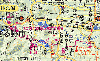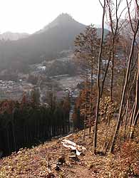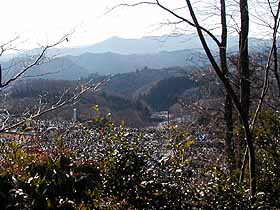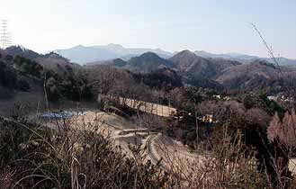 2005年2月14日(月)晴 JR・秋川1313…秋留橋南方の峠1343…1430雹留山1435…東京西線69号鉄塔1443… (150) 30 (200) 47 (270) 8 (△260) 25 東京西線71号鉄塔1508…1145小峰公園上部四阿1551…東京西線76号鉄塔1559… (310) 37 (290) 8 (310) 28 日向峰1627(尾根を1634伐採地先まで行って戻る)1640…沢戸橋1700…1725武蔵五日市 (・323) (250) 20 (190) 25 (180) 体力度A+ 神経度A+ (歩行合計約4時間05分) ◇5万図 青梅 五日市 ◇2.5万図 拝島 五日市最近、入山尾根とか舟子尾根、遠ノ谷戸山などJR・武蔵五日市駅の南方にある尾根を歩きました。また、以前には弁天山・網代城山も歩いたことがありますが、武蔵五日市駅のすぐ南に東西に横たわる小峰トンネル(近年新小峰トンネルに付け替え)が貫く尾根が残っていました。この尾根は更に東に延び、以前歩いた秋川丘陵ハイキングコースへ続いています。そこで、秋留橋南方の峠から入って西へ尾根を辿って沢戸橋付近へ下るルートを歩く事にしました。 五日市線・秋川駅から歩き出した時には既に13時を過ぎていました。2時間程度のショートコースでは午後発も珍しくないのですが、この日は、休暇を取った平日で、山中4時間の歩程が見込まれるこのコースですから、10時半〜11時には秋川駅を歩き出せるようには家を出たのです。しかし、埼京線の信号機故障で電車が数珠繋ぎになり、直ってもなかなか発車せず新宿まで1時間半以上のロス、11時ごろようやく立川に着いたら、今度は青梅線の架線切断で送電を停止して修理と言うことで更に1時間以上のロス。遅い出発では過去何度かピビらされた日没を意識せざるを得ず、本日のハイキングは断念することも考えましたが、比較的交通の便が良い里山で途中エスケープルートも豊富なので強行。当然、のんびり景色を楽しむことは出来ませんでした(T_T)。 駅の少し東の滝山川街道を南下、秋留橋へ。前方右手ににサマーランドの観覧車、その右には大岳山方面が望まれますが、圏央道の高架が邪魔です。サマーランドの裏山が目指す秋川丘陵です。 秋留橋の手前より、秋川丘陵とサマーランド。橋を渡ってトンネルの手前を左へ150mくらい行った所、朽ちかけた「秋川丘陵ハイキングコース」標識から右へ折り返すように登って行く林道に入ります。更に、左右に折れて登って行った名もない峠から、右手の山道へ入ります。 初めはやや藪っぽい道も、すぐに明瞭な尾根道となり、右側サマーランドへの斜面には何本もの小さな谷がえぐるように突き上げて来ています。その谷と谷の間の小尾根は痩せていて、六枚屏風と呼ばれる奇勝となっています。 その後、道は左山腹を巻いていきますが、谷が浅いので巻き道と言うよりは、谷沿いの道という感じです。やがて、谷のどん詰まり近くから乗っ越して稜線の右側を行くようになります。 左手の景色がゴルフ場となる頃には一本南の尾根に合流しています。この道をしばらく辿り、気が付くと、左手の景色がゴルフ場から墓地に変わっているので振り向くと、雹留山と思われる小ピークの北側を通り過ぎていました。本日唯一地形図に名のあるピークである雹留山なので、戻るように尾根に入り、登りました。 登り着いた雹留山ピークは、G・M・G八王子ゴルフ場と上川霊園を隔てる支尾根の分岐点にで、墓石群の彼方に入山尾根が望まれ、一段下に小社があります。 雹留山より墓石群の彼方に入山尾根。雹留山から西に少し下って行くと舗装車道が乗越す名もない峠に降り立ちます。以前来たときはここから車道を左(南麓の霊園入口BS)へ下りました。ガイドブックには、右(北)へ下り武蔵増戸駅へ行くか、弁天山へ登るコースも紹介されています。今回は、そのまま、ガイドブックにない尾根沿いの道を行きます。ガイドブックにない道と言っても、歩いてみると送電巡視路でもあり、比較的明瞭な道が続きました。 3分ほどの登りで、東京西線69号鉄塔ピークに着きました。ここは後から地形図を見たら本日唯一の三角点ピークでしたが、焦っていたため標石には気づきませんでした。ここから尾根道、東京西線鉄塔を番号順に辿るようになります。 69号鉄塔のすぐ先のピーク付近は好展望。69号鉄塔のすぐ先のピーク付近は好展望の場所になりますが、下りでは右手五日市ゴルフ場のグリーンが近付いてきて、このままそこへ入り込むのではないかと不安になります。しかし当然と言うか、道はグリーン裏のOB杭をかすめてゴルフ場から離れて行くので一安心(^^;)。 71号鉄塔ピークからは地形図が示す通り、左へ急降下して車道に下りますが、巡視路仕様の階段になっているので傾斜のきつい割にはすんなり下れました。 降り立った車道はまたまた名もない峠で前方右手はゴルフ場の敷地のため、左手へ尾根への登り口を探しますと40mくらい行った所に「不法投棄厳禁」の黄色い看板2枚に挟まれた登り口がありました。ここの登り始め2〜3m位は非常に急で、その後右へ法面の上縁に付けられた道をビビりながら行くと左へ折れて尾根上