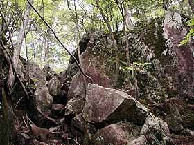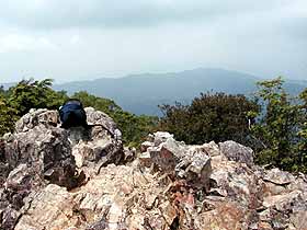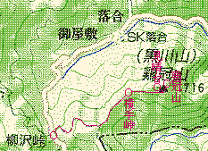 2005年6月25日(土)晴(山上曇一時晴) (板橋区の自宅より原付で)柳沢峠1005…1105横手峠1110…1134見晴台1145… (1472) 60 (1550) 24 (・1716) 14 1159鶏冠山1211…横手峠1238…1334柳沢峠(原付で自宅へ) (1700) 27 56 体力度A+ 神経度A (歩行合計約3時間05分) (バイクの運転込みでは 体力度B 神経度A+) ◇5万図 丹波 □筆者参考文献 「マイカー登山・ベスト周遊コース[東京周辺]」(森田秀巳)柳沢峠から鶏冠山へは昔、軽二輪(VT−250F)を使って行った事があるのですが、その時の参考書「東京付近の山」(1979)では、鶏冠神社奥ノ院のある岩頭=鶏冠山で、5万図でも、鶏冠山(黒川山)となっていたので、鶏冠山に登頂した印象のみ強く、その時の歩程で黒川山三角点(該参考書では鶏冠山三角点峰 1710.0)に行ったかどうかの記憶さえ定かではありません。該参考書では、三角点の先にある展望絶景という見晴台の事には触れていないので、当然行っておらず、その後見晴台の存在を知ってからは、機会があれば再訪したいと思ってもいたのです。 と言うことで、今回、スーパーカブ50山行第4弾としてこの山を選びました。250cc級のVTに比べれば50cc級のカブはかなり非力で、不安はありますが、前回、松姫峠(1240)までそれ程の苦もなく行けたので、今回はそれより若干遠く高い柳沢峠から、その時より歩程の長い黒川鶏冠山を目指す挑戦もそこそこ行けそうな気がしました。季節的には梅雨ですが、この週末は天気予報で完璧に「晴」という事で、帰り頃の雷の懸念はありながらも決行。 この日、自宅をもっと早く出てもよかったのですが、朝食に自宅から1時間ほどの道中にある「山田うどん」(営業6時から)の天ぷらうどんが無性に食べたくなり、5時10分過ぎの出発。富士街道から新青梅街道に入り、東村山の陸橋を渡った辺りに目当ての「山田うどん」(東大和店)があります。そこに達するまでには予定通り1時間強かかっており、目出度く入店。いかげその入ったかき揚げがお気に入りの天ぷらうどんを堪能。しかし、この後とんでもないアクシデントに襲われます。 入店時、駐車場にカブを留め、後部荷台にゴムひもでくくりつけてあったザックを外します。どうせ、出発時またくくりつけるので、ゴムひもは垂らしたままにしました。そして、食後戻って来たとき、新青梅街道に復帰すべく無意識にザックを背負ったままカブを押します。すると厭な感じの抵抗感。はっとして見ると案の定、後輪軸にゴムひもが巻き付いてしまっていたのでした。 あわててメインスタンドを立て、後輪が自由に回る状態でゴムひもを引っ張りますが、すんなりとは取れず、力ずくで取ったら先の針金製フック部分がちぎれてしまいました。しかし、それ自体は大した問題ではないし、巻き付いていたゴムひもは残らず取れたようなので、再び押して行こうとすると異音が。 何と、上下からチェーンを覆っているカバーのうち下のカバーが合わせ目付近でひん曲がってチェーンに当たっているではあ〜りませんか!(ToT)。カバー上下の合わせ目にゴムひもが食い込んでしまっていたのでしょう。曲がった方向が内側(チェーン側)のため、小さな6角ボルト2個で固定されたカバーを外さないと曲げ戻せませんが、カブに車載工具は一切なし。 歩道で傘の骨やら木の棒を拾って合わせ目に突っ込み、上のカバーを外側にひん曲げて何とか空間を作り下のカバーを曲げ戻そうとしましたが、直角にひん曲がっているためうまく引っかからず、2〜30分くらい悪戦苦闘しても結局はその付近全体を外側へ曲げ浮かせて、チェーンへの当たりを弱くするのが精一杯。 仕方なく、カバーがチェーンに当たったままの状態で出発。新青梅街道を西へ2〜300m走ったところでガソリンスタンド発見。有り難いことに、そこのおやじさんにモンキーとペンチを借りることが出来、あっけなく修理完了。かなりの時間ロスでしたが、前途を断念する程でもなく、そのまま予定のルートを辿る事になりました。 青梅、氷川、奥多摩湖と辿るのも、最近通い慣れた感じです。丹波からいよいよ柳沢峠道となります。この辺り、昔は、法面が露頭状態で、路面に落石が砂利のように積もっていただけでなく、風が吹くとカラカラと小石が落ちるような音さえして不気味だったのですが、現在ではコンクリートでカバーされ、ネットにも覆われているので、安心して通過することが出来ました。 かなり登ると周りの景色もなだらかになり高原情緒さえ漂いますが、非力なカブは相変わらずあえぎあえぎ登ります。意外に長く感じる最後の急登をくねくねと登って行くとようやく柳沢峠に到着。 柳沢峠の駐車場。峠にはドライブインの手前右手に町営の広い駐車場があり、立派なトイレも建っています。カブを留め対面のコンクリートの階段から始まる登山道へ入って行きます。 初め、ササがかぶり気味で、この季節、先が思いやられましたが、すぐに程度が良くなり5分程で広い遊歩道に合流。結局、ここから先も全歩程、薮の心配
