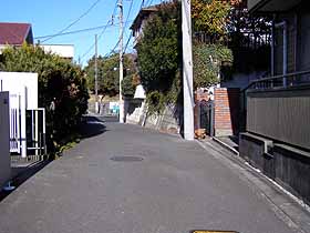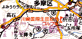 2006年1月8日(日)快晴 小田急線・向ヶ丘遊園1040…1057枡形山展望塔1105…長沢浄水場正門1136… (20) 17 (84+) 31 (70) 13 1149四等三角点(100.3m)1155…1243三等三角点(117.8m)1248… 48 12 1300四等三角点(94.0m)探し1343…1351新百合ヶ丘 8 (50) 体力度A 神経度A (三角点(94.0m)探しを除く歩行合計約2時間15分) ◇5万図 東京東南部正月休みは、草は枯れていながらまだ積雪もない、低山のヤブっぽい道を辿るのに好適な季節ですし、休養日を入れながら2〜3回は山に行けるだろうと思っていました。ところが、年末に2〜3日ほぼ安静にしていても、疲れはとれず、風邪気味なのと、真冬並の寒波の来襲で、山に行く気力は起きず。しかし、天候は晴れが多く、せめて丘陵ウォーキングでも、と言うことで、生田緑地・枡形山から西に続く、市街化されてはいるものの地形的には尾根の丘陵部を辿り、新百合ヶ丘駅まで歩いてみることにしました。 小田急線・向ヶ丘遊園駅前の「松屋」で腹ごしらえ。他に、「大戸屋」、「東秀」と筆者定番の定食チェーン店が目白押しで選択に迷うところです(^^;)。また、暖かな気候の日であれば「オリジン」で弁当を買って枡形山あたりで喰らうのもよし(^^;)。 駅前から西へ道を拾い、病院前を通過、線路沿いになり、踏切の手前から左へ登って行く「くらやみ坂」へ入ります。やがて車止めを過ぎると緑地帯となり、枡形山山頂。能舞台様のエレベータ付き展望塔の上階に登ります。 遠望の利く冬季の展望塔からの眺めは抜群、と期待していたのですが、周りの木の高さで、微妙な視界。筆者馴染みの、奥多摩、奥武蔵方面の山々も位置的な影響か、桜山展望台(加治丘陵)や連光寺BT付近からの眺めに比べて低くて迫力がありません。唯一目立つ丹沢、富士方面は、ここより高い位置にある専修大の建物が大いに邪魔。と言うことで、満足度は50%くらいでした(^^;)。 枡形山展望塔より富士山と専修大。展望を楽しんだら、いよいよ西への縦走(って言う程か(^^;)。)開始。まずは、図上、枡形山から水平直線距離2.3kmくらいの100.3m三角点(5万図では三等三角点までしか三角点としておらず、四等三角点は「標石のある標高点」扱い。)を目指します。西へ尾根を辿り生田緑地を抜け、専修大の食堂前から南へ回り込むとゴルフ場越しに丹沢、富士方面が望めますが、今度は送電線などが邪魔な構図。専修大BSから道也に西進し、長沢浄水場の施設の間を通り、その正門がある南側の道へ出てずっと西進。水道管らしき橋の下をくぐって、スーパー「いなげや」の前から左へ登って行くと、右手に墓地「春秋苑」があり、その入口のすぐそばの小さな丘に登ると鐘楼と四等三角点がありました。西側、墓地の先に家並みが、その奥に山々が望まれますが、イマイチ迫力のない眺めです。 春秋苑の鐘楼と三角点。次に目指すは、図上、ここから水平直線距離2.1kmくらいの117.8m三角点。さっき来た道を更に西進します。アンテナ塔の立つ水道施設の前を通った後、道は左カーブし本日の最高地点と思われる2.5万図121m標高点付近を通りますが、標石があるわけでもないので、現地では「この辺りであろう。」と言う程度にしか認識出来ませんが。 やがて、下り坂となり道は3本に分岐しますが、センターラインの引き方からもメインと判る、一番右の道を選びます。この先、尾根の左(南)縁を行き、左手の建物が眼下となって、丹沢方面が見渡せるようになり、道端の小園地には「眺望図」までありますます、が富士山は丹沢山塊に隠れて頂上付近しか見えません。 その先、前方に小さな高みが見えてきます。そばまで行くと「弘法松公園」の標識。その脇から階段を登って行きます。ベンチがある中段の平地から更に頂上まで登り切ると、「三等」と読める三角点標石を発見。横にコンクリ製のベンチとテーブルもありますが、樹木に囲まれ展望もないせいか、あまり訪れる人も多くないようで結構ヤブっぽくなっています。ここが117.8m三角点であることは間違いありません。 117.8m三角点。あとは、西へ適当に道を拾って行けば新百合ヶ丘駅まで10分程度のはずですが、2.5万図上でそのルートの北側、百合ヶ丘駅寄りの所に94.0m三角点を発見。5万図では標石のある標高点なので、四等と思われます。最後の趣向として、そこへ寄って行く事にしました。 今までの2点は、何れもピーク上のため発見が容易だったのですが、今度は斜面にありそうなのでちょっと手こずりそうだとは思っていました。しかし、1時間近く探し回って見つからないとは(T_T)。近くまでは10分ほどで到達できたのですが、「ここであろう」と思った場所(住宅街の道路付近)に標石が見つからないので、勘違いもあるかと思いその周りを40分くらい歩き回ったりして何度も確認しましたが、どう見ても最初に「ここ。」と思った場所が三角点所在地なのです。四等点は比較的新しいので道路を造った際に破壊されたり埋もれてしまったりという事はないとは思うですが…。 94.0m三角点のある