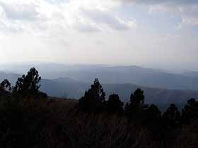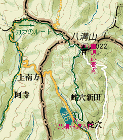2006年11月3日(金)晴 (板橋区の自宅よりバイクで)舗装道路最高点1236…1237八溝山1253… (1010) 1 (△1022) 1 1254舗装道路最高点(バイクで帰宅) 体力度A 神経度A (歩行合計約0時間05分) (バイクの運転込みでは 体力度A+ 神経度B) ◇5万図 塙(はなわ)この3連休は金・日と晴れの予報。スーパーカブ90登山第5弾は、八溝(やみぞ)山系の主峰、栃木・福島・茨城の三県にまたがる八溝山です。八溝山(1022)は広域のガイドブックにもよく紹介されている山ですが、東京からの日帰り圏としてはかなり距離があるうえ、JR・水郡線、大子(だいご)−蛇穴(じゃけつ)間のバスとも便数が少なく、公共交通機関利用ですと早朝出発でも山頂に立てるのは14時近くになりそうで、帰りに水戸から「スーパーひたち」を使わないと帰宅も深夜になりそうです。しかも、歩程の半分程は車道歩きで、時間短縮のため往きにタクシーを使うなら歩道の入口まで行けますが、7千円もの出費増。それに、付近山頂まで舗装道完備。 となれば、カブ90登山しかない(^^;)。カブ乗りにますますハマり込んでいる現状、そろそろカブ登山は寒さできつい季節ですが、防寒手袋やオーバーズボンを用意して、路面凍結期前まで続けそうです(^^;)。更に今回、筆者未体験のロングカブツーリングになりますが、3連休の初日となれば、それも一興かと。 八溝山へは地図で見た感じ、最短の行程を選べばR6(常磐線沿い)よりR4(東北線沿い)利用の方が近そうなので往路はこちらを採りました。ただし、R4に入る前、出た後も出来るだけ北北東方向になるように的確に道を選ばないと距離をロスします。それなのに現実は…。 環8から新荒川大橋を渡るはずが、見逃してしまい道也になんと南下、結局鹿浜橋から舎人、草加とジグザグに辿ってやっとR4に。かなりのロスですがこれは序の口でした。 宇都宮の先までは道也にR4を行けばよく、標識に導かれて右車線を選ぶと自然にR4のバイパスに入っていました。こちらは交差点が少なく、殆ど常に60km/h超でないと交通の流れに乗れません。それ自体は旧道より速度が上がりますのでいいのですが、大型車や暴走車(法定+10を遙かに超えたり、安全な車間距離より遙かに少ない20m程度を開けると追い越して割り込んで来る車)が多くてビビります。 そのうち、前回給油後の走行距離が180kmを超えました。セルフのガソリンスタンドを発見。しかし、セルフは未経験でシステムが解らないので見送り、近くに次のスタンドが現れなければ適当な交差点で左折して探そうかと思いました。前回、キャップまで余裕ある入れ方だったので、200km超えは無理かも知れないとは思ってはいましたが、もう少し行けると思っていました。ところが、すぐにはスタンドはおろか交差点もなし、そして新利根川橋を渡りきらない所、前回給油から183kmでジ・エンド(ToT)。 ビビりながらカブを押して、次の立体交差の側道を下りR354へ降り立ちます。そこから左右どちらを見渡しても視界にスタンドの看板は目に入らず。何となく、古河方面(旧R4方面)へ。幸いガス欠から2km程カブを押した所にスタンドが営業中で、給油することが出来ました。 この時、ガス欠から目一杯入れて貰ったのに3.85Lしか入りませんでした。公称のタンク容量4Lに安全係数が見込まれていないとはムカ付きました。例えば、18Lの灯油タンクに18L入れてもキャップまでかなり余裕がありますし。 ガス欠で30分はロスしましたが、すぐ近くに「山田うどん」があったので、天ぷらそばを摂食。ガソリンが入っても来た道を戻るのは気が乗らないし、もう少しのんぴり走りたいのでそのまま古河方面へ進み、旧R4を辿りました。宇都宮の先で右手からバイパスが合流、更に鬼怒川を渡った先で、首尾良く〈10〉に入ることが出来ました。 当初の計画では無名の道でも何でも地図上で北北東の向きに近い道を拾って行くつもりでしたが、実践的にはそれは困難と悟り、多少遠回りでも番号標識のある国道や主要地方道を通ることに方針変更。 その先、烏山付近からR461に入りました。しかし、その先で八溝大橋に入る右折箇所を見逃してしまい、先の交差点を右折、すぐの「道の駅 ばとう」でトイレ休憩。この地点を通ること自体6km程のロスですが、更にその先でR293を鷲子山分岐まで行ってしまい馬頭に戻るまで往復12kmくらいロス。やっと〈52〉からR461に入りましたが、次の分岐点「須佐木」の地名標識がなかなか現れません。今までの錯誤で疑心暗鬼になって、国道上なのにGPSで現在地を確認する始末(^^;)。須佐木はすぐ先で、〈321〉はすんなり見つかりました。 この辺では、周りの田園風景が好もしくて、道も穏やかで走っていて楽しいところです。秋なのに、陽光を浴びた草木の緑色が鮮やかで、そこに黄葉、さらに僅かな紅葉も混じり、印象派絵画を彩度UPしたような眺めです。やがて、景色が山間部の趣になり、道も蛇行し始めます。道も林道風になり最後に右へ大子方面への峠道を分けると初めて「↑八溝山 10km