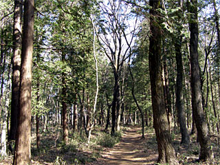いろいろあって前回から6年以上ぶりの報告追加となりました。この間、ハイキング自体あまり行ってませんでしたが、これからは時々山に行ってその報告を上げたいと思います。 最近はアニメファンの間でアニメ作品の舞台を訪問する「聖地巡礼」が流行っていて、それを露骨に町興しに利用しようとして失笑を買っている自治体もあるほどです。その「聖地巡礼」ではありませんが先日、アニメ「ヤマノススメ」を見て思い出した飯能を天覧山まで散歩してきました。その時、この辺の良さを再確認しましたので、今回、少し本格的に歩く事にしたのです。 飯能周辺には、奥武蔵自然歩道が通っていて、あまり標高差のないヒルウォーキングを楽しむことが出来ます。交通至便な割に静かに緑の中に身を置ける半日コースです。似たコースを前回99年5月にも歩きましたが、その時飯能から直行した高麗峠へ今回は天覧山から歩いてみたいと思ったのです。 平地にあるのに何故かスイッチバックの飯能駅から少し北上し左折して「飯能ぎんざ」や「大通り商店街」を西へ。公民館に突当たったら右折して行けば左前方に「天覧山入口」の表示を見つけることが出来ます。樹間の舗装道を緩く登って行けばトイレのある広場から勾配を増した小径となり岩が出てきて駅から30分ほどで天覧山山頂(195m)です。 麓との比高は僅かですが山頂からの展望は、街方面も、山方面も抜群です。 天覧山山頂より富士山〜大岳山の展望。先ほどの広場まで下り、指導標に従って高麗峠を目指します。すぐ山頂から直接来る尾根道に合流。そっちを下れば良かった。途中まで多峯主山への尾根道を行くようです。やがて、高麗峠への分岐を右へ。尾根通しに近い道を期待していたのでかすが飯能−高麗の車道が乗っ越して行くより遙か飯能寄りで車道に出てしまいました。 車道併設の歩道を少し歩いて西武線の高架をくぐった先の「中山(西)」交差点付近、ゴルフ場入口の左手に高麗峠への入口を発見。やはり、山道は気分がいいです。 高麗峠への道。次の分岐の指導標は3方向を示していますが、発見できた道は左右だけ。左(近道)を行けば広場「ほほえみの丘」を経て尾根が少し痩せてくれば高麗峠です。峠とは言ってもゴルフ場敷地の縁にあるためか乗っ越す道は見あたりません。尾根道を僅か先で左へ下って谷に降りるとすぐ麓に出て高麗川をドレミファ橋で渡ります。 日和田山を望みながら巾着田を縦断して行きますが、地表レベルの視点ではここが巾着田であるという雰囲気は全くありません。バス通りに出て左へ橋を渡り、適当に道を拾って高麗駅へ。平日のためか、楽しみにしていた駅そばは営業しておらず、仕方なくトイレに寄っただけで出発。 ここから武蔵台の住宅地を経て多峯主山までの道の様子は帰宅後読み返した99年5月の記述内容と変わりませんでした。 多峯主山山頂。前回は多峰主山から尾根を辿って天覧山へ行く道を採りましたが、今回は指導標に従い、見返り坂を経て谷に降ります。その先、天覧山への登り道を見送りそのまま谷の道を行けば間もなくバス通り。少し左へ行けば能仁寺の正面で、その先が今朝入った天覧山入口です。 能仁寺前からは往路付近の道を適当に選んで行けば、飯能駅まで20分ほどです。 ▲項目索引▲ ◎トップページへ戻る◎ |