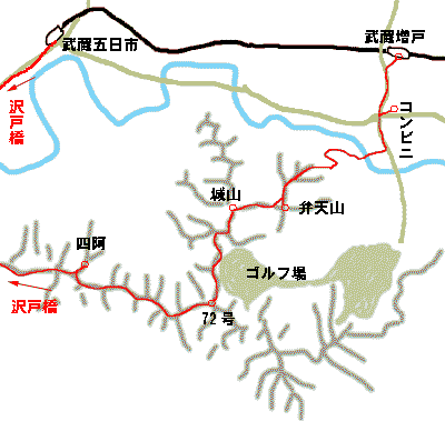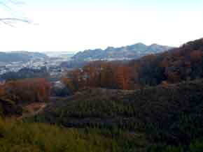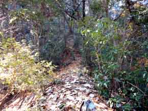 2014年12月 9日(月)快晴 JR・武蔵増戸850…858コンビニ(7-11)901…932弁天山950…1007城山1016 (180) 8 31 (280) 17 (△331) …1107鉄塔72号1121…1148鉄塔74号1156…1208小峰公園上部四阿1215 51 (300) 27 (290) 12 (290) …沢戸橋1322…1354JR・武蔵五日市 67 (190) 32 (180) 体力度A+ 神経度B- (歩行合計約4時間30分) ◇5万図 青梅 五日市 ◇2.5万図 拝島 五日市今回は武蔵五日市近くの弁天山・網代城山(網代城跡)から秋川丘陵西部を歩いて来ました。眼目は城山から秋川丘陵主脈へつながる地図上水平距離0.8km程の未知の尾根道です。2.5万図を見ると主尾根のつながりが不連続(それまでの主尾根の脇の一段下から別方向へ始まる尾根が主尾根の続きとなるようなパターン)な部分もありますが、核心部の距離が短く里にも近く、いざとなれば引き返すのは容易なので地形図以外に予備知識のないルートとしては比較的楽な気分で出掛けました。 武蔵増戸駅から南に進み五日市街道(交差点から左の7-11へ往復して弁当購入)を渡って大きめな橋の手前を右折。橋を渡って道なりに左カーブして登って行くと弁天山公園の入口。鳥居をくぐって指導標に従って登れば露岩の出た弁天山に到着。東側が見下ろせる気分のいい場所なので岩に腰掛けて早くも弁当タイム(^^;。 少し戻って左へトラバースする道へ入れば城山へ続く尾根道に出ますが尾根通しに来れたのではないかと後悔。 2段の登りで城山(網代城跡)に着きます。ここからが本日のハイライト。GPS、革軍手、風鈴の藪山3点セットを準備していざ出発。 道は明瞭で藪もありませんが急な下りは落ち葉に埋もれて滑るので木につかまれる場所を選んで進みます。現在地確認をしながら進みたいのですが、GPSは例によって「衛星信号ロスト」で樹林帯では役に立ちません。上方が少し開けた場所で視界に衛星が3個入るまでたいてい数分待たないといけないので現在地確認は連続的には出来ません。しかし、この尾根に関しては樹間から見える両側の近景が山ではないので目視+地形図+コンパスでもルート外れは比較的検知し易いです。 網代城山から秋川丘陵へ続く尾根道。小ピークを越え、少し先で左へ分岐する急降下道を発見。ここが不連続尾根の屈曲点と思われたので下って行きました。道なりに行くと尾根を右に外れたトラバース道となりますが、落ち葉に埋もれて右斜面にずり落ちそうで嫌な感じ。巻き終わった先の尾根道は西向きで、枝尾根のようなので逆方向に登ると程なく主尾根の南向きルートに乗ることが出来ました。ずっと尾根上を辿るべきだったのかも知れませんが、この付近、尾根の左(東)側のゴルフ場の縁は電子国土の等高線からは60度くらい(2.5万図では崖記号)の急斜面である事を知ってたので、道が尾根の右(西)側を巻くことを「さもありなん」と思ったのです。 現地では確かに左側は急斜面でしたが、道はしっかり尾根上でした。少し先、左側の傾斜が多少緩んだあたりでロストボールを発見。見下ろすとプレイ領域からは100m近く、標高差も40mくらいはありそうで、しかも樹林帯ですから木にはじかれて戻されそうで、どれだけミスったらここまで打ち込む大OBショットが打てるものか不思議に思いました。わざと狙っても難しそうです。 そこからは穏やかな登りで秋川丘陵主脈へのジャンクションである東電72号鉄塔に到着。核心部は無事通過し終えたので鉄塔の基礎(コンクリ)に腰掛けて大休止。ここからは東電巡視路を西へ辿ります。 他の東電巡視路同様明瞭かつ歩き易い道が続きます。途中径40cmくらいの大木が根こそぎ倒れていましたが通行には問題ありません。73号、74号と鉄塔を辿って行き小さな切戸をぺらぺらな木製の橋で渡り僅かに登ると小峰公園上部の三叉路に着きましたが、何と今来た道の入口にパイロンに虎バーを渡した仮柵が設置され、「この先、立入できません」の表示が。指導標も「通り抜け不可」となっています。 前回2005.02.14に来たときは仮柵はなく、指導標に「倒木多く危険」とあるだけで、特に立入規制を示すものはなかったのですが。帰宅後調べて見ると立入禁止区間はここからの雹留山西の舗装道路(東電巡視路へ入るところ)までのようです。秋川丘陵中間部の実質的メインルートが通行禁止とは残念ですが、この区間の公式ルートは元々ここから一旦北へ下り城山・弁天山を通って舗装道路を尾根まで登る迂回路のようなので、いずれそちらも歩いてみようと思います。 今回も近くの明るく開けた肩のような場所にある四阿で小休止。三叉路は今来た方から見て右(直進)は公園内を通る下山路で、左へ登る道が沢戸橋方面なのでこちらに入ります。 日向峰分岐付近より網代城山を振り返る。本日の最終ピークとして日向峰を通るつもりだったのに分岐を見送って巻道を沢戸橋まで下ってしまいました。分岐に気が付かずに通過した訳ではなく分岐付近で城山を振り返る写真を撮っていたのにです(^^;。前回の印象と違う感じがしたのでこの先だろうと左側の巻道を行った