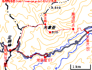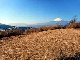 2016年12月2日(金)快晴 (小田急新松田駅よりバス)矢倉沢BS 922…953車道終点1008 (250) 31 (400) …1132矢倉岳1218…1333足柄城址公園1405…1454地蔵堂BT(バスで新松田駅へ) 84 (・870) 75 (750) 49 (・417) 体力度A+ 神経度A+ (歩行合計約4時間15分) ◇5万図 小田原 □筆者参考文献 「東京付近の山」(1998 石丸哲也他)前回訪れたのは個人的記録によれば94.11.05ですが、太いミミズが這うコンクリ舗装林道を汗だくで登った印象だったので、もっと暑い季節だったのかと思ってました。まあ、それくらい忘れているコースですから、再び辿るのも無駄がありません。 新松田駅発地蔵堂行のバスに乗り、矢倉沢で降りましたが、本数が少ないので時刻表を調べてこの日一番の845発のバスに合わせた電車で来ました。バス停すぐ先の交差点を左折、切通し(以前はトンネルだった)を通って橋を渡るとこちらにもバス停がありますが、こちらのバスは平日に1本だけです。 その先民家の壁に直接「←矢倉岳ハイキングコース」と書かれているのにはびっくり。左へ進み、指導標に従って右折。道也にコンクリ舗装の林道を行き、左分岐に入りすぐのイノシシよけの門を開け閉めして通り抜けます。少し開けた場所で車道は終わります。ここで、GPSのテスト。何と、樹林の中でもないのに使えませんT_T)。 登山道に入りどんどん登って行きます。傾斜のきついところは斜めに、ゆるいところは直登になっていて効率的です。だいぶ上がると明るい雑木の道になり、もうすぐ山頂かと思わせますがGPSを見るとまだ標高差100m以上あったりします。こういうもっこり型の山は、目の前に次々とニセ山頂が見え勝ちです。(^^; まだ紅葉も見られる雑木の道。意外にきつい思いをして山頂に到着。休憩込1時間40分の予定が2時間10分も掛かってしまいました。先に2組の登山者がいましたが、すぐに筆者ひとりになりました。たぶん、先が長いのでしょう。この日の筆者は登頂はここだけなのでのんびり出来ます。 矢倉岳山頂。山頂からは、湘南方面−箱根方面−富士山方面が見渡せますが、残念ながら丹沢方面の視界は低木とススキで塞がっています。更に残念な事に、この日は快晴でしたがぽかぽか陽気のせいか視程は悪く、富士山中腹以下や箱根の山々、湘南の海岸線は霞んでいます。ゆっくり写真撮影したり弁当タイムを楽しんだ後、足柄峠を目指します。 はじめはどんどん下り、その後、登り下りの緩い巻道となったあたりから左手に矢倉岳を振返る事が出来ました。足柄峠が近付くと足柄万葉公園の一角で、指導標に従って右手尾根上へ上がると石碑と和歌の解説板があります。尾根上を少し下って突当りを左へ巻き下ると車道に出ました。 間もなく足柄万葉公園のバス停があります。ここまでバスで来れば矢倉岳にはかなり楽に登れそうですが、土日のみの運行です。この辺り、道が尾根を絡んでいて直角に乗越してる場所がないので、どこを足柄峠と同定したらいいか判りません。少し先に県境があり、切通しになっているのですが「足柄峠」の表示はなし。その3分ほど先に「あづまはや 足柄峠」の標柱がありますがおよそ峠らしからぬところです。更に3分ほど先の足柄城址公園前には足柄峠の説明板があり、峠道と金時山方面への道が分岐していて、柱に「足柄峠」と書かれた標識もあるので、ここが一番それらしい所です。矢倉岳からここまで75分は予定通りです。ここから地蔵堂まで予定コースタイムは50分なのに対して、地蔵堂発のバス発車時刻までは1時間50分くらいあるので城址公園に寄って行きます。車道から僅かに登った所にある広い頂稜部が城址公園で、芝生にベンチがあり、富士山や金時山を見ながらのんびり過ごしました。 足柄城址公園。バス発車まで予定コースタイム+30分くらいの余裕を持って下山開始。途中足柄関跡等見ながら車道を少し戻って右手に地蔵堂方面を示す指導標を見つけて足柄古道を下ります。 足柄古道は石畳でちょっと川原の道みたいに足に来ますが、くねくね折り返してる車道を何回も横切って、ショートカットしている実感があります。かなり下って車道歩きとなれば付近の傾斜は緩んで川に沿うようになりますが、矢倉岳等景色を眺めつつ道也に歩いていたら右分岐の丁字路に地蔵堂方面を示す標識を発見。角地には「金太郎伝説の里」とかかれた屋根付きの門のような案内板があり、それを見てもっと手前で右分岐に入るのが予定のルートだった事に気が付きました。かなり行き過ぎているなら次のバス停まで行ってしまう事も考えましたが、地図で確認するとここから地蔵堂BTまで250m程度のようなのでそのまま右折して地蔵堂を目指しました。350mほど遠回りになりましたが、足柄城址公園から予定のコースタイムで着く事が出来ましたのでバス出発まで30程待つ事となりました。 バスが走り出すと次の停留所・足柄古道入口までかなり(今調べたら丁字路から1.5kmくらい)ありましたから地蔵堂BTへ来たのは妥当でした。が、時