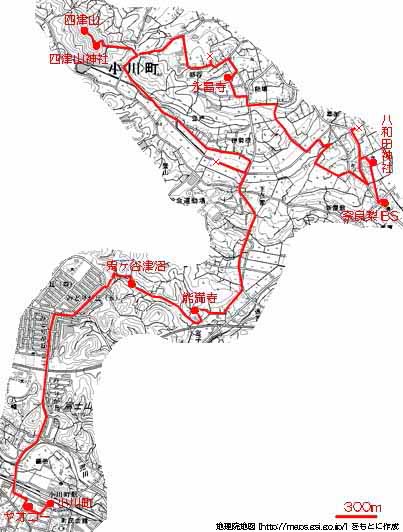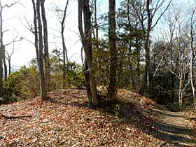 2017年2月20日(月)晴後曇一雨 東武線・小川町1146…1149ヤオコー1207…鬼ヶ谷津沼1253…1308能満寺1313 (91) 03 (91) 46 (96) 15 (97) …(8分ロス)四津山1423…1428四津山神社1452…(5分ロス)永昌寺1516 62 (200) 05 (197) 19 (85) …(8分ロス)八和田神社1601…1606奈良梨BS(小川町へ) 37 (62) 05 (63) 体力度A 神経度A+ (歩行合計約3時間25分) ◇5万図 熊谷 □筆者参考文献 「東京近郊里山ハイキング」(2004 小林利秋他)この日は、朝晴れていて、夕方は雨になるものの、日中の気温は高いという予報。で、朝、急に里山歩きを思い立ち、参考書で筆者未踏のコースを物色し、今回のコースに決定。登る山は麓からの比高僅か100m程の四津山1山のみ、その他の大部分も山道ではなく里道。つまり、里山歩きと言うより里道歩きですが、参考書に掲げられたいくつかの経由地(寺社)を各局面での目的地としながら、非日常(田舎)の風情を満喫する散歩も一興かと思います。 小川町駅南側すぐ近くの地元スーパー「ヤオコー」で弁当・おにぎり購入し、イートインコーナーで弁当タイムの後出発。駅の西側の渡線橋を渡って北上、富士山(△182.1)の西側の切通しを登って行くとR254バイパスとの交差点に横断歩道はなく、車道を渡れないように歩道は隙間のない埒で覆われていて、自転車用の冗長な登高を強いられる歩道橋を使うしかありません。 更に北上すると顕著な住宅街となり、突当たり(厳密には前方にも細い道がある十字路)を右折し、150m程で「みどりが丘小学校」の道標に従い左折して進むとカーブミラーの柱に「→ 鬼ヶ谷津沼」(実物は縦書き)の標識があるのでそれに従って、その先の標識で折り返すように左に下って行くと最初の目的地・鬼ヶ谷津沼の畔に着きます。ここから景色は住宅街から一変し、田舎の風情。 左へ沼の縁の小径を周って行くと車道が始まるでこれを行きます。車道は右手に田んぼがある浅い谷に沿って、傾斜を感じないくらい緩く下っています。この辺り、TVアニメ「のんのんびより」の背景のような如何にも田舎という、のどかな景色です。左手に「おがわ町市民協同高谷発電所」の看板があり、一瞬「あれ、鬼ヶ谷津沼の小さな落差・水量で発電出来るの?」と思いましたが、水力ではなくソーラーパネルが並んでいました。今、写真で数えてみると5×9枚+4×3枚+3×3枚=66枚でした。この程度の規模で発電所を名乗っているとは随分だな(^_^)。 谷が終わるとR254バイパスに出合いますが順路は左へ分かれていく道です。ですが、その前に左手の石段を登って2つ目の目的地・能満寺に寄って行きます。無人の能満寺からは本堂右手の道を下って順路に復します。 突当たりを左折して250m程で<184>に合流し、それを北上します。小川町総合運動場への標識がある左折路の先で、左手の視界が開け、田んぼの奥に如何にも城山然とした四津山が見えます。 <184>より四津山方面。その先で左折して3つ目の目的地・四津山を目指します。この道は工事中ですが、歩道は封鎖されておらず歩行者通行可かと思われましたので行ってみました。ところが、250mくらい先から全面通行止めで、<184>に引き返すハメとなりました。(8分ロス。) 一本北側の道へ入ります。やがて、さっきの工事中の道と合流し、その先も工事中ですが右に細い道が続いています。この道を進み、「→ 四津山神社」(実物は縦書き)の標柱で右折、少し登って峠から左に入れば鳥居が見えて参道が始まります。この前後、真上の雲も薄いのにぽつぽつと天気雨が降って来て、「夕方からのはずなのに」と少し焦りました。(登頂した頃には止みました。) コンクリの参道は斜度が増すと石段となります。66段くらい登り、右へトラバースした後更に115段くらい登ると峠から10分ほどで四津山神社の社殿前の広場に着きます。ここは、北西−南東に200mの長さがある四津山頂稜部の南東端で、高見城跡の本郭です。山頂(最高点)は頂稜部の北西端(三の郭)にあるので堀切や二の郭等、高見城の遺構を辿って往復(所要片道5分ほど)。 四津山山頂。神社の社殿前に戻り、広場の端のベンチでおにぎりタイム。広場は20×20mくらいあり、立木の途切れた場所から、北関東方面、熊谷方面、小川町総合運動場方面、奥武蔵高原−笠山方面等が覗けますが、この日は視界が悪く、赤城山は雲の中で、奥武蔵高原もシルエット状に見える程度でした。 四津山神社。参道を下り、戻り着いた来た峠からはさっき登って来た時とは逆の北側へ進みます。ここから先、順路は分岐が多い屈曲したルートになるので、出掛ける前、地理院地図のハードコピーに参考書のルートを蛍光ペンでなぞったときは現地での道間違いを心配しましたが、道也でない分岐点には指導標柱があるのでほぼ問題ありませんでした。 ただし、次の永昌寺へは、右折、左折の後、道也に行けばいいところに左折を匂わせる標柱があって5分ほどロス。「¬」みたいな形の左向き矢印で、少し先の丁字路を左へ行けという意味だったようですが、標柱の場所には左折