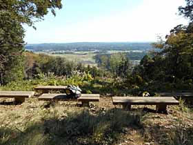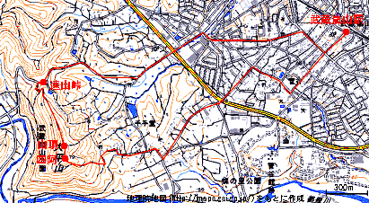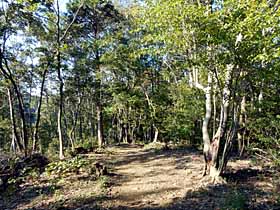 2017年10月26日(木)快晴 東武線・武蔵嵐山駅1147…1242大平山1340…遠山峠(仮)1355…1436武蔵嵐山駅 (64) 55 (・179) 15 (116) 41 体力度A 神経度A (歩行合計約1時間55分) ◇5万図 熊谷雨の日が続いてこの日やっと晴れの予報。神川御嶽山(343m)に行く予定でしたが、二度寝したら6時前。交通不便なところなので6時には家を出ないといけませんから見送り。それでも、どこか行かないと勿体無い。で、まだ行ってなくてお手ごろなコースをネットでいろいろ探してぐずぐずしていたら9時ごろになってしまいました。そうなると、昼頃から歩き出してもOKな所ということで贅沢言えず、多くの記事で他との抱き合わせ扱いの武蔵嵐山・大平山に決定。 武蔵嵐山の駅前をどんどん行き、突当たったら右折して行けば太目の道<69>に出るので左へ行きR254バイパスを渡ります。ファミリーマートで弁当を調達、更に行くと、<173>となった県道が左へカーブする所で右の分岐へ。 指導標に導かれて緩く登っていけば樹間の登山道となり、10分ほどで右手に山の神を見送れば間もなく四阿に着きます。ここは大平山頂稜部の南端で、前の斜面は切開かれた野原なので南東方面の展望があります。今日は快晴ですが、残念ながら都心のビルがかすかに見える程度の視界でした。 四阿前のベンチと切開き。山頂とされる場所は100m位奥、頂稜部北端にありますが、四阿のすぐ先のピークの方が僅かに高そうで、179mの標高点もその付近と思われます。山頂は樹林の中なので引き帰し、四阿前のベンチに腰掛けて弁当タイム、まったりと小1時間過ごしました。 下り道の美林。下りは頂稜部から北に続く尾根道、美林の中を緩く下り、傾斜が増すと左から始まるジグザグで車道に出ます。車道を僅かに右(東)に行った乗越地点に、以前、ここに「遠山トンネル」があったという「遠山トンネルの碑」がありますので、ここは「遠山峠」と言えそうです。 峠から車道を東へ下って行き、R254バイパスを渡れば少し先に右斜め前(駅方向)へ向かう道があり、ここを行き突当たりを右折すれば、往路駅前から来た道に出合います。 特段の名所もありませんが、好天の日にのんびりゆったり田舎道を散歩することが出来、それなりの満足感は得られました。しかし、累積標高差120m・距離6.5kmほどの軽いハイキングで翌日筋肉痛T_T)。 ▲項目索引▲ ◎トップページへ戻る◎ |