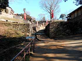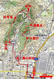 2018年12月24日(月)快晴 東武線・太田駅956…高山神社1020…1034大光院1042…駐車場の展望台1113 (42) 24 (75) 14 (50) 31 (190) …1136金山1205…標高点P 1231…1310休憩所1315…高山神社1334…1351太田駅 23 (・239) 26 (・184) 39 (126) 19 (75) 17 (42) 体力度A 神経度A+ (歩行合計約3時間30分) 【GPS記録】距離8.8km ◇5万図 深谷大田駅北口を出て、まずは登山口の大光院を目指します。北西方向なので、西へ行って北へ行けばよいのですが、弁当調達でコンビニ(7-11)に寄るために、適当に道を拾って行きました。 コンビニ手前を左(西)へ行くと右手に山裾らしき高まりが見えたので行ってみると神社らしき石段があります。それを登りきって鳥居をくぐった頂上広場には基礎のみがあり不気味です。地形図に建物の記号と高山神社の注記があるのですが、ネットで調べてみると建物は放火により消失したとのことでした。 基礎のみの高山神社。西側に下りて、また道を拾って大光院(寺)に着きました。 境内の広場のベンチで休憩し今後の道を地形図とスマホのネット記事で確認。渡り廊下の下をくぐって [西山ハイキングコース> の指導標の先から登り始めます。尾根に出て、緩い起伏を行けば四阿の先で道は二分。右へ行くと巻道となりますが、次の四阿から左へ斜面を登れば尾根に乗り、右手に駐車場があります。ここのトイレの屋根は展望台となっていたので寄って行きました。 この先、城跡らしい屈曲した道となりますが、尾根上またはその右側を行きます。石畳や石垣が目立ちますが、遺構なのか最近の模造構築物なのか区別がつきません。途中、尾根を戻るように左へ少し行った所(222.3m三角点付近)にある「物見台」に寄って、日光・赤城・榛名等の山々の展望を楽しみました。 物見台。 金山城跡。更に金山城跡の見学路を行き、最後に緩くて短めの石段(実際に通ったのは右脇の仮設木道)を登れば新田神社で、ここが金山の山頂です。木立に囲まれていますが、東端から筑波山は望まれます。ベンチに腰掛けて弁当タイム。 山頂・新田神社。来た道を少し下って、東寄りの道を探して東山コースに入りました。始め、すぐ右に見える車道を歩くのではと心配しましたが、車道は尾根から離れて行って安堵。 松風峠付近で車道を跨ぐ太鼓橋を渡れば次のピークは左へ巻くのが本線のようですが、登る道もあったのでそちらへ。登り着いた184m標高点ピークには山名表示等はなく、なぜかシイタケのホダくらいの長さに切られた丸太が積まれていました。 橋から数えて三つ目のピークには表題「中八王子山矢倉台」の白い立札がありますが字が薄くなっていて読み辛いです。 下って突当たりを左へ行き、指導標が「親水公園」を示す方へ下って行くと鞍部よりやや西の地点で車道に出合いました。車道を左(東)へ150mくらい行った所が峠(鞍部)で右手に一段上がった園地からやや藪っぽい道を登って行けば左手からの遊歩道に合流し、登りきったピークには「休憩所」の標識がありました。休憩所はコンクリの床の上に低い囲いのある向かい合ったベンチという、屋根のない四阿のような不思議な造りです。 その先で道は二分しますが、長く尾根を歩きたいので右の道を下ります。右手に野球場を、その先左手に「受楽寺」の門を見て車道を横断。次のピークに登る道はなさそうなので左から巻いて行き、南側へ回り込むと折り返すように石段がありました。それを登ると見覚えのある景色。今朝来た高山神社です。地形図を確認すると、なるほど、高山神社のピークは東山コースの尾根の南端ピークと言えます。 高山神社から太田駅へは往路を戻りました。 往きの電車で足利市付近を通るとき、車窓の小山が気になりました。地図を見ると「浅間山」(たぶん「せんげんやま」)。帰りに足利市で下車して寄りました。麓から70m程の標高差をジグザグに登り切れば祠のある北峰(約110m)からの眺めは抜群でした。渡良瀬川対岸の行道山が懐かしく眺められ、今日登った金山も逆光ながら振り返ることが出来ました。白い浅間(あさま)山は東京から見る富士山のような雰囲気で印象的です。南へ108.7m三角点峰(石祠あり、展望なし)を越えて鞍部の車道を東へ下りました。折角なので、渡良瀬橋を渡って対岸の「渡良瀬橋」(森高千里)歌碑も見て行きました。 足利・浅間山より金山。今回のハイキングは買ったばかりのハンディGPS・etrex 20xの初運用です。その結果は期待通りのもので、従来品 etrex LEGEND では「衛星ロスト」になりがちな樹林帯でも途切れることなく軌跡を記録する事が出来ました。使える衛星の種類が増えた(従来は米のみ。20xでは+露+日。)だけでなく、感度自体も上がっている気がします。その結果、捕捉している衛星の数が2〜3倍はある感じ。 最初に買った GPS 38 の表示は緯度・経度の数字だったので、現在地を知るために、方眼線を引いておいた地形図にプロットしていました。 次の LEGEND では50m等高線地図が表示されたので、方眼線は不要で地形図へのプロ
