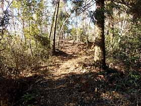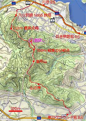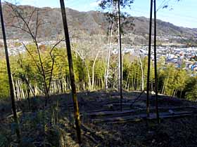 2019年2月4日(金)快晴 串川グラウンド前BS1008…1040山の神1050…1106堂所山1126…350m峰南の分岐点1134 (216) 32 (361) 16 (△371) 08 (330) …350m峰の先で道探し(1142〜1155)…350m峰南の分岐点1202…318m標高点峰1229 08 (320〜340) 13 07 (330) 27 (・318) …1239八ツ沢線No65鉄塔1249…1304川坂BS1309…1322日赤病院前BS 10 (241) 15 (168) 13 (164) 体力度A 神経度A+ (歩行合計約2時間45分) 【GPS記録】距離5.5km ◇5万図 八王子 上野原例によって地理院地図で手頃な山を物色してたら、津久井城山の西に未踏の370.7m三角点峰を発見。ググってみると、「堂所山」で、ハイキングコースもあるようです。ただし、北西の318m標高点方面へ続く尾根に関する記事は発見できず。でも、小さな山なのでヤブがひどいとか立入禁止区域とかで転進してもダメージは小さい。なのでこちらから登って、堂所山の南から東南東へ続く尾根を下る計画を立てました。 しかし、当日、乗るバスを間違えてしまい、当初計画と逆のコースを辿ることになりました^^;)。 橋本駅北口で「橋01」バスに乗ろうとしたら「橋03」が来たのでそれに乗ってしまいました。こちらも三ヶ木行で、目指す六本松BSは終点近くなので、最悪でも近くは通るだろうと思ったのです。しかし、乗ってから調べたら橋01は目指す山塊の北側を行くのに対し橋03は南側を通って行くのです。 それなら、逆コースで行こうと決め、車窓から景色を眺めて見当を付けて、目指す尾根末端に近そうな停留所・串川グラウンド前で下車しました。 少し戻った交差点から北西向きの道へ入り、すぐ先で右折すれけば山裾に突当り、左へ少々で山道に入ることが出来ました。道は不明瞭ですが、下草のない植林帯なので、西向きにトラバースしつつ判らなくなったらとにかく上へと進みます。すると、明瞭な登り道に出合いすぐ尾根に登り着きました。立派な指導標もあります。無事ハイキングコースに入れたと言う事でめでたしめでたし^^)。 明るい尾根道。ここからは植林少な目の明るい尾根道で、指導標や地名標識が頻出します。「天王宮」、「供養観音」を通過し、「山の神」と表示された360m等高線ピークに登り着きました。ベンチに腰掛けて、橋本駅の売店で買った三角サンド2パックのうち1パックを食べました。 次の「宮標石」で右折して数分の登りで堂所山に着きました。西側は陣馬山を中心とした眺めが広がり、東側は頂上の端へ出れば木に邪魔されずに城山方面が眺められます。ベンチに腰掛けて、三角サンドの残り1パックを食べました。 堂所山から陣馬山を望む。堂所山から北へ向かう尾根を下って行くと送電鉄塔付近から、城山の左に新宿の高層ビル群や東京スカイツリーが望まれます。 堂所山の北から東京スカイツリーを望む。その先、下りきった350m等高線ピーク(以下「350m峰」)手前の鞍部は三差路+ヤブ尾根道。指導標によれば、右「上町・中町 監視所」、左「ミツバツツジの里 四方竹林」。右はハイキングコース本線なので今日の予定とは別方向、左は方向的には合っていますが地図にない地名なのでどこに向かうのか見当が付きません。尾根通しに行くのが確実と考えて、正面のヤブっぽい尾根道に突入しました。 登り着いた350m峰には「神奈川県「水源の森林づくり」契約林」の表示板が立っています。その先はヤブだらけでどこが道だか判らなくなりますので、ヤブの薄そうな箇所を適当に進みます。目的の尾根はこの先から西へ向かっているので、それらしい辺りから左に下ってみますが、30度くらいありそうな急斜面だし、もしそれを下りきってもヤブが続くならヤバイ感じです。なので、直接行くのは断念して、少し戻って北に下ってみます。左へ山腹を巻いて西の尾根に至る道があるかも知れないと思ったからです。しかし、両側急斜面の顕著な尾根となって、そんな山腹道はありません。結局は350m峰の南の分岐点まで戻って、「四方竹林」方面の道に入ってみる事になりました。 この道はゆるく下り気味に350m峰を巻いて行くので、道成に行くと山腹から下山してしまうのではないかと心配し、右側(尾根側)に登れそうな場所を探しながら行くつもりでした。しかし、あっけなく最初の鞍部で尾根に接していました。本線はこの先もトラバース道となりますが、当然、右の尾根に乗って行きます。この地点、さっき下りを断念した場所からわずか標高差約20m、水平距離約50mなので、それが判っていれば強行突破していたと思います。 この尾根道は、先程までのハイキングコースほどではないけれど、一般的な仕事道に比べれば明瞭で、すいすい歩いていたらいつの間にか318m標高点を過ぎてしまっていました。堂所山同様に本日の主要なチェックポイントなので、100mほど戻って、道から10mくらい西のピークを地図上の318m標高点峰と同定しました。山名表示も切り開きもない植林の場所です。 318m標高点峰。さっき引き返した辺りからは完全な下り道となりますが、ここへ来て道が不明瞭になって少し不安になりま