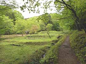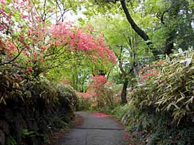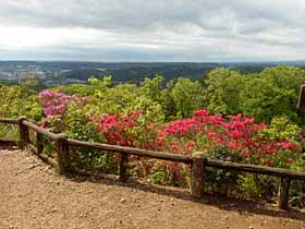 2019年5月2日(木・休)曇一時雨時々晴 西武線・飯能駅748…803タイムズマート814…828天覧山838…909多峯主山925 (108) 15 (117) 11 (・197) 31 (△271) …932御獄八幡神社943…吾妻峡1013…1040龍崖山1101…園地下部1133…1214飯能駅 07 (235) 30 (105) 27 (246) 32 (150) 41 (108) 体力度A+ 神経度A (歩行合計約3時間40分) 【GPS記録】距離10.1km ◇5万図 川越前日までは、曇や雨の日が続いていたので引きこもり。この日は「11時頃まで晴、その後曇で15時頃一時雨、ただし大気不安定でいつでもにわか雨の恐れあり。」の予報。なので、昼間過ぎには下山出来るプランと言うことで飯能周辺の超低山歩きを企てました。 飯能駅からは適当に近そうな道を通って天覧山入口へ向かいます。公民館前から北上する道で、指導標に釣られて左の路地へ入ってしまいましたが、太い道をそのまま行った方が近かったです。 天覧山入口脇のタイムズマート(個人経営のコンビニ)に寄ってあんパンとおにぎり個を調達。アニメ「ヤマノススメ」の店内展示も少し見学。 天覧山への登り道は、紅葉の季節もいいのですが、この日は新緑とツツジの花がいい感じでした。天覧山山頂であんパンタイム。残念ながら雲や霞で、富士山等の遠景は見えません。 天覧山への登り道は新緑とツツジの花がいい感じ。多峯主山へは尾根通しに行きたいのですが、指導標が「多峯主山」を示す道は谷へ下るルートに入ってしまうので、まずは「高麗峠」を示す道へ入るのが肝要です。201m峰を面過ぎてしばらくは比較的平坦で、多峯主山が近付いてから一気に登る感じです。 多峯主山の山頂も展望やツツジの花で景色がよいのでのんびりしたい場所ですが、腹の直径が1cm以上ありそうな大きな虫が数匹ブンブン飛んでいるので落ち着けません。ハチだったら恐ろしいので、おにぎり1個食い終わったところでビビって退散。 多峯主山のツツジの花と東南東方面の展望。多峯主山には何回も来ているのですが、御獄八幡神社に寄るのは初めてです。ベンチで、残りのおにぎりを完食。 下ってみると神社の下は露岩の絶壁でした。ここから下る道も新緑の美林。谷まで下ると棚田跡のような里山的風情もいい感じです。 棚田跡のような里山的風情もいい感じ。バス通りに出て少し西進した所から左へ入り名栗川にに下れば「ドレミファ橋」のある吾妻峡。ドレミファ橋は橋脚のみで桁がないので流れを跨いで渡ります。 対岸から車道に上がり、少し東進した右手の八耳堂から龍崖山を目指します。登り口付近はシャガの群落が不気味です。第1ロープ坂、第2ロープ坂と、固定ロープのある道を登ります。バランス的にはロープが必要なほどの斜度ではありませんが、腕力が使える分、脚は楽です。 龍崖山山頂も好展望。名栗川の対岸にさっき登った多峯主山が大きく、東は都心方面、北〜西は奥武蔵の山々が望まれます。山頂南の肩のような場所からは南面の展望が広がりますが、富士山はおろか丹沢方面も雲の中です。 龍崖山公園方面へのハイキングコースを辿ります。道は主尾根の左側を行くのですが、谷の部分は水平に回り込まず横断する感じなのでアップダウンがあります。龍崖山を発った頃から小雨がばらついていましたがここへ来て本降りに。雨水を木の枝葉が溜めきれなくなって登山道にもぱらぱら落ちて来たので仕方なく折り畳み傘をを広げます。 樹林帯が切れて、龍崖山公園の園地下部に到着。アースダムの斜面の途中のような雰囲気の場所ですが、上部の反対側は下り斜面ではなく、平らに均された造成地「茜台」です。赤根峠方面を目指すなら茜台へ登るところですが、今回は下の車道へ下ります。 龍崖山公園の園地下部の調整池と帰路の車道。車道へ出たところの左下の谷底は下流に堰堤がある調整池ですが、対岸下部に坑道の開口部のような横穴が見えます。帰宅後調べたら、横穴は龍崖山の下を通って西側の調整池と繋がっているトンネルでした。 後は車道を進み、飯能駅を目指すのみです。名栗川が近付く頃には晴れて来ましたが、傘は日傘のように差し続けて乾燥を図ります。左折すれば岩根橋を渡って飯能市街という交差点もそのまま直進するのが近道です。行き止まりになる手前で右へ行けば、左手に割岩橋が見えますの出これを渡ります。橋から見下ろせる飯能河原にはBBQ等日帰りキャンプ(?)を楽しんでいる人々が見えました。 割岩橋を渡ってからもひたすら直進して飯能駅に戻り着きました。傘もすっかり乾き、折り畳んで収納することが出来ました。 近場の比較的短いコースですが、緑にどっぷりと漬かり込み、花や景色を楽しむ事が出来ました。富士山が見えなかったのは残念ですが^^)。 ▲項目索引▲ ◎トップページへ戻る◎ |