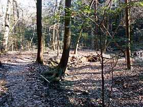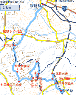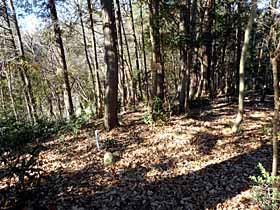 2021年1月13日(水)快晴 飯能駅0906…尾根下BS付近0906…秋葉山0929…秋葉大権現石碑1005 (107) 25 (120) 23(・221) 36 (234) …1015七国峠三角点峰1035…国立音大西1051…地点G1114…1127地点C1131 10 (△225.9) 16 (205) 23 (143) 13 (143) …国立音大東1140…阿須木蓮寺山1146…190m圏峰1207…尾根末端1213 09 (204) 06 (△203.6) 21 (188) 06 (166) …1227南峰交差点1231…1244金子駅 14 (147) 13 (154) 体力度A+ 神経度A+ (歩行合計約3時間50分) 【GPS記録】距離11.2km 【地理院地図累積標高差】上り424m 下り377m ◇5万図 川越 青梅飯能の南にある七国峠付近は地理院地図で見ても非常に多くの道(林道・小径)が走っていますのでいろいろなルートで歩くことが出来ます。ハイカー的に七国峠へ行くと言えば地理院地図に注記のある峠よりむしろその南の225.9m三角点峰が目的地です。(ガイドブックによっては「七国峠」は三角点峰の下の広場だったり三角点峰だったりします。) 今回は、北の地理院地図「尾根」注記辺りから入って221m標高点峰から尾根道を辿り、七国峠三角点からは北東〜東〜北東に伸びる尾根(途中に立入禁止区間あり)を辿り、この途中で右折して203.6m三角点峰から東へ尾根を辿って八高線金子駅方面へ下る計画です。(文中※は帰宅後調べて得た知見) 飯能駅南口から「美杉台通り」を行き、川を二つ(入間川・成木川)越えて<195>に突き当たります。右(西)へ少々で尾根下のバス停があり、この付近の路地から山へ入るとすぐに左に尾根に取り付けそうな道があったので行ってみますが民家への道で行き止まり。あわてて戻り、谷沿いに進みますが、こっちも行き止まりっぽっくなって、樹木点在の畑地のような場所や駐車場を20mくらい通らせてもらって細めの舗装道(農道規格)に出ました。(※ここは、<195>に突き当たったら左(東)へ少々行けば、ずっと舗装道経由で来られた場所です(^^;。) 道路を登って行くと右手に小径入口。「秋葉神社ヲ経て七国峠二至ル」と言う標識のある道です。登り着いた本日の第1チェックポイント・221m標高点峰の頂上には秋葉神社があり、「秋葉山」の表示がありました。秋葉山は赤根峠の南にもありましたから、この辺りは秋葉神社の影響力が大きい地域なのかも知れません。地理院地図の210m等高線から想像できるようにここは双耳峰の東峰なので西峰にも寄って行きました。(巻道が本線) 秋葉神社。尾根道を行けばメインルートに合流。「阿須丘陵七国コース」の地点L(以下、単に「地点〇」と記す)です。ここから先七国峠まで分岐が頻出するのでその都度確認して道を選んで行きます。 238m標高点峰は左(東)から巻きますが、右手斜面にはなぜか灌木の中に白い杭が林立していて異様な光景です。 その先、メインの道が右に大きく巻いて行くので尾根上の小径を行くと「秋葉大権現」と彫られた石碑があるピークに登り着きました。そんなに古そうな石碑に見えなかっのですが横には「文化十四年」(※1817年)とありました。 その先、下った道は北向きなので、広めの道に合流したら折り返すように右折、すぐにメインルートに合流して程なく地理院地図上の七国峠(地点J)で、その先の「七国広場」入口付近から左の尾根道を登れば七国峠の三角点峰です。三角点標石に「七国見晴台」と書かれた板が立てかけてありましたが、樹林に阻まれて大岳山くらいしか見えません。 南へ下り、左へ折り返して東へ続く尾根(はじめは北東向き)の道に入ります。明瞭な道が続きますが国立音楽大学の施設の敷地に阻まれます。物理的には通行可能ですが「関係者以外立ち入らないで下さい」と書かれた立札があるのでそれに従います。前回は北側をトラバースして突破しましたが、今回はきつい藪漕ぎは嫌なので左へ下りました。 谷底の道。谷底の道まで下り、更にその道を下流へ。地点Gから右へ登って地点Cで主稜線に復帰しました。ここから左(北東)に尾根末端近くまで辿ったのが前回のルートですが、ここは既に203.6m三角点峰への分岐を過ぎている地点なので、逆向きに尾根を辿ります。 間もなく、国立音楽大学の施設の敷地の尾根上東側の入口に。ここが203.6m三角点峰への分岐でした。勿論ここにも「関係者以外立ち入らないで下さい」の立札。西側の入口からここまで直線距離は200mもない所ですが、迂回して歩いた距離は2km以上です。でも、谷底の景色も風情があったのでハイキングコースとしてはアリでした。 左へ下るとすぐ林道のような道に降り立ちます。この道はすぐ右手で舗装道に接続していて、入口には鎖で車止めが施されていました。正面の高みへ登ればあっけなく本日の第2(最終)チェックポイント・203.6m三角点峰に着きました。三角点標石の周りは狭い切開きで、木に「阿須木蓮寺山 (四等三角点木蓮寺) 標高203.6m 埼玉県入間市最高地点」と書かれた手作りの標識が掲げられていました。あとは、ここから東に続く尾根を行けるところまで行って下山するのみです。 阿須木蓮寺山山頂。すぐに「飯能線6」の鉄塔を過ぎ、少し先で下って行くと