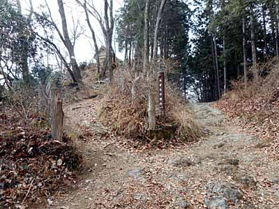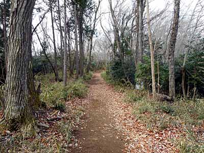 2021年1月26日(火)晴後曇 東青梅駅1017…青梅の森四小口1032…1058 280m圏峰1106…1117第2休憩所1119 (189) 15 (205) 26 (286) 11 (300) …第3休憩所1133…1155矢倉台1217…里道出合1239…1246日向和田駅 14 (299) 22 (・383) 22 (221) 07 (217) 体力度A 神経度A (歩行合計約2時間10分) 【GPS記録】距離6.6km 【地理院地図累積標高差】上り439m 下り411m ◇5万図 青梅 五日市2020.12.25に青梅丘陵第2休憩所付近から北へ尾根を辿ったとき弁当タイムをした280m圏峰からは東へ続く尾根道がありました。今回は、その尾根道を登って280m圏峰へ登り、前回コースの逆に第2休憩所へ辿り、そこからは青梅丘陵ハイキングコースを西進し、矢倉台で弁当タイム、この先の分岐から日向和田へ下るという比較的軽いプランです。 東青梅駅北口に降りたのは10時過ぎなので駅前のスーパーが営業しており、弁当を購入して出発。バス通りを左へ行き、成木街道を渡った次の角を右折。成木街道と並行する裏道を北上します。スーパーが利用できなければ弁当を調達するつもりだったコンビニ(ファミマ)の裏を過ぎればやがて成木街道より一段上を行くようになり、右手、成木街道越しに小学校の校庭が見下ろせます。その先左手に、異常に急な舗装道が分岐しており(「青梅の森入口 60m」の標識あり)、これを登ると「青梅の森入口(四小口)」(「四小」は先ほどの小学校でしょう)の標識がありここから遊歩道が始まります。 遊歩道を行く。遊歩道ははじめ尾根上を行きますがやがて鞍部以外は巻くようになり、必要な分だけ登る感じで起伏が少なく楽な仕様になっています。しかし、肝心の280m圏峰も巻いてしまい、前回同様南側から登る事に。「東からの尾根道で280m圏峰へ登る」という第一目標は未達に終わりましたT_T)。 280m圏峰で休憩していると3人組の登山者(この辺りは散策者が多いのですが大きめのザック担いで如何にも登山者然)が北側から登って来ました。やり過ごすつもりでしたが彼らも休憩。こっちはもう十分休憩したので先に出発しました。彼らは筆者が登って来た側に陣取っていましたので、北側へ下って巻道を南へ。ところが間の悪いことに丁度彼らも彼らも南側の道から下って合流して来ました。仕方なくダッシュして間隔を確保。 今回は294m標高点峰は道なりに巻きました。しかし、第2休憩所ピークへは北側から尾根道で行くつもりだったのに、道なりに巻道を行ってしまい、ここも前回同様東側から登る羽目に。 第2休憩所では水分補給して出発。平日とは言え、この辺りは地元高齢者とみられる散策者も多く、長時間人に出会わずという訳には行きません。すぐ西で北へ向かう道(前回辿った道。今回、逆向きに辿るはずだった道)と分かれ、西へ向かう「青梅丘陵ハイキングコース」へ行きます。 切戸に架かる橋を渡って行けば本線は林道規格(太めの道)となり、ずっとピークを巻いて行きます。尾根上の小径もありますが、休憩所に寄ったとき以外は本線を行きました。第3休憩所は展望なし、第4休憩所は人がいたのでどちらも寄っただけで休憩せずスルー。 やがて本日の最大目的地・矢倉台へ。これまでの休憩所は今回コース外の第1休憩所も含めて全部本線の右(北)側へ登った所でしたが、ここは本線から左(南)側に登りました。 矢倉台入口