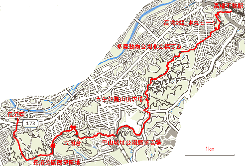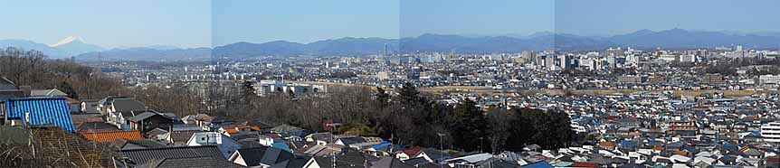 2021年2月11日(木・祝)快晴 長沼駅0821…長沼公園展望園地0845…六国台0923…0944平山城址公園展望広場0950 (90) 24 (188) 38 (180) 21 (・169) …七生公園山頂広場1016…多摩動物公園北の標高点1047…高幡城趾本丸ピーク1108 26 (178) 31 (・153) 21 (・126) …1121高幡不動駅 13 (67) 体力度A 神経度A (歩行合計約3時間00分) 【GPS記録】距離9.4km 【地理院地図累積標高差】上り491m 下り514m ◇5万図 八王子長沼公園周辺あるいは高幡不動から長沼公園へは何度か歩いていますが、逆コースで長沼公園から高幡不動へ通して歩くのは初めてかも知れません。いずれにしてもハイキングと言うよりは長めの散歩という趣です。 長沼駅から北野街道を渡って南へ向かい二又を右へ入って西尾根コースへ。このコースは結構痩せ尾根の部分があって、スケールは小さいものの山登りの気分にさせてくれます。主稜沿いの道に登り着いたらそれを左(東へ)へ辿れば、頂上園地を経て展望園地へ。北面の展望が得られますが、この日は若干モヤっていて視程はイマイチでした。平山口の階段を下りて、鞍部を乗越す車道へ。 長沼公園西尾根の道。この先六国台の近くまで尾根上は立入禁止区間なので北側から回り込みます。地図上、北へ少しくだった所に184.1m三角点への道があるので入ってみましたが、登って行くと「私有地立入禁止」。その手前の右折路もすぐ先で工事中のバリケード。三角点へは到達できず。三角点への道は階段状マンションの上部敷地内のようです。引き返しますが、その下りからは奥多摩方面の山々が望めました。 北へ下り、住宅地の上部、出来るだけ山側に近い道を選んで六国台への登り口を目指します。階段状マンションの下部を回り込で更に左へ右へと進むと、土地の段差(正面の宅地は数m上)に突き当たるので更に北へ少し迂回してから宅地最上部から平山城址公園に入り、少し登って行けば六国台の直下です。(ここの西150mくらいの所から立入禁止になっています。) 六国台は広めの頂上園地になっており、展望所も設けられていますが立ち木にさえぎられて殆ど視界は開けません。公園内の遊歩道を東へ。 京王研修センターと東京薬科大の門の間を通り、野球場を見下ろすピークを越えて中央広場へ。その北側は以前来た時は平山台小学校でしたが、今は平山台健康・市民支援センターになっています。その東のピークが展望広場で眺めのいい所なのでベンチに腰掛けて休憩。 展望広場を下って少し行った所から公園を出て、左手緑色のフェンス沿いに進みます。フェンスの中は以前来た時は多摩テック(遊園地)があった所で、その時間近に仰ぎ見た観覧車も撤去されていました。 車道(<155>)に出たら左へ。この辺は以前は多摩テックの正門があった場所です。突き当たった「程久保六丁目」(以前は「多摩テック入口」)三差路を左折、100mくらい先の右手に「かたらいの路」の看板があり、そこから七生公園の小径に入ります。 この道は七生公園山頂広場の左(西)を巻いて行きますが、せっかくなので右へちょっと登って寄って行きます。展望はありませんが細長く小広い山頂広場にはベンチも数基あって弁当を食べるにはいい所です。本線に戻って進みます。 右手に「切通し」の表示を見た辺りから道は多摩動物公園の縁に沿って行きます。一旦、宅地の舗装道に出て100m程でまた小径に入ると、西〜北の大展望が広がります。 ![]() 多摩動物公園の北西(南平二丁目住宅地の山側)からの展望。 その先、153m標高点ピークには墓地のような石碑が鎮座していますが今回はスルー。その数分先、階段で住宅地の車道に下ります。 住宅地内は交差点だらけですが、柱状の指導標や壁に描かれた白ペンキの案内に従って進み、すんなり高幡不動の裏口へ行く事が出来ました。 高幡不動に入るとすぐ左手に「見晴台」の標識。寄ってみましたが富士山方面が見える程度。本線に戻って進むとまた「見晴台」の標識。こっちの「見晴台」は高幡城趾本丸ピークを指しているようです。 高幡城趾本丸ピークは、残念ながら山地の方角は木で塞がれていて展望は都心方面のみです。この126m標高点峰には不動ヶ丘とか愛宕山の山名があるようです。「高幡山」という字も目にしましたが、それは山名と言うより山号でしょう。 高幡城趾本丸ピークの下り道より。下り道は五重塔など目立ち、いかにも境内の道という感じです。平地まで下ると道の両側のは露店が出店していました。門を出て商店街の道を3分ほど行けば高幡不動駅に着きました。 このコースは好展望の場所も何か所かあるので、視程の利く日に歩くのがお勧めです。また、高幡不動はともかく、多摩動物公園以西は平日ならあまり人に合わなくて済みます。 実は2日前に南高尾北面の入沢川左岸の尾根を登りに行って、尾根末端付近は右へ行っても左へ行っても「市有地立入禁止」の立て札だらけで諦めて帰って来たのですが、その日に、ここを歩けばよかったと思いました。その日は本日より視利効いた