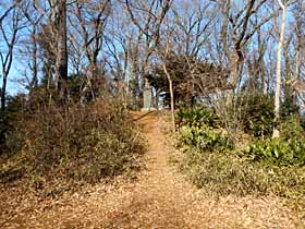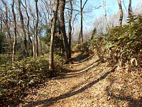 旧版の「埼玉県の山」に下山口駅〜荒幡富士〜将軍塚〜西武園駅のコースが紹介されていて、96.01.19に歩きましたが、今回は将軍塚〜荒幡富士の順で所沢から辿る事にしました。(文中、「地図」は地理院地図を指し、※は帰宅後調べて得た知見です。) 当日は朝は曇りで昼頃から晴だったので、所沢駅近くで昼食を摂った後、スタート。朝からスタートすれば昼前にはゴール出来ますので、どちらにしても弁当持参の必要はありません。 所沢駅西口から<4>を南下。西武池袋線のガードをくぐって進み<4>が左へカーブして登って行く手前の分岐(我妻交差点)で右の直進路に入ります。これを緩く下って行き西武新宿線のガードをくぐる手前のY字路で右の細い車道へ入って最初の信号を右折しました。その先、橋を渡ってすぐ左折し川沿いの遊歩道を行きます。左に橋が見える所で斜め右に入り、送電線沿いに進めば「久米川古戦場跡」の石碑があり、その先は八国山緑地になっている丘ですが、地図には将軍塚へ直登する破線があるものの、現地はコンクリートの急な法面が立塞がって、この付近からは入れません。 「久米川古戦場跡」の石碑。奥の緑地へは法面が立塞がる。地図を見ると法面沿いの車道を左右それぞれ100m強行った所に道があるので左へ行くと八国山緑地の入口があり、実線の道(小径よりやや広い道)を登って行きます。雑木に、笹のいい感じの道です。 八国山緑地に入り内、都県境尾根への登り道。程なく都県境尾根沿いの道に合流しますが、将軍塚は右(東)へ少し行った所でした。なので、都県境尾根沿いを西へ辿るのに将軍塚まで往復区間となり、「さっきの石碑から右へ行けばよかった」と後悔しました。そちら(東側)から入れば都県境を一方向に辿る事が出来たのです。地図をよく見てなくて、こちら(南側)からの道と将軍塚付近で合流するものと勘違いしていたのです。 将軍塚。将軍塚は小ピーク上に建てられた記念碑(※元弘3年(1333年)の北条氏との戦いで新田義貞が軍勢を指揮した場所。)で、その前には「元弘青石塔婆跡」の石碑(※新田義貞が戦死者の供養のために建てた「青石塔婆」の記念碑。実物(国の重要文化財)は徳蔵寺に保管。)もあります。ベンチで休憩。展望はありませんが雰囲気の良い場所です。 88.9m三角点標石は、地図の記載通り将軍塚ピークの東で比較的容易に見つけることが出来ました。 さて、都県境尾根沿いの道を西進開始。この道は八国山緑地の雑木林の中の遊歩道ですが、右側はすぐ近くまで松が丘の住宅地が迫っていて、樹間から家並みが覗かれます。八国山緑地は都県境尾根の南面に広がっているので、何か所か現れる分岐では松が丘への下降路を除きいずれも右を選ぶ感じです。 やがて、左手に広場とトイレが見えて、八国山緑地の出口(西側の入口)となります。 広めの車道まで下って行く道からは西武園の観覧車が目に付きます。ここから荒幡富士へは西武園ゴルフ場等をよけて行くので、直線距離に比べてかなりの遠回りになります。(※地図上の計測で広めの車道への出合から荒幡富士山頂まで直線696m、今回のルートだと1865m。) 広めの車道を北上します。結構車が飛ばす道なのでビビるのですが歩道は左側のみにあって、ガードレールの切れ目がないので、そのまま右端を行くと、100mほど進んだいなげやの入口でガードレールが切れたので左側に渡って歩道を行きました。ところが、200mほどで歩道はなくなりました。しかし、いつのまにか右側に歩道があったのでそちらへ。それならずっと右側を行けばよかった。(※拡大した地図を見るといなげや入口で横断した位置から70mほどそのまま行けば右側に歩道出現T_T)。) この辺からは道の左側にゴルフ場が接していますが、樹林帯に遮られてそれっぽい景色は見えません。 しばらく北上した後、「←狭山丘陵いきものふれあいの里センター」の標識を光蔵寺先の交差点を左折します。 しばらく進むと道は林道規格っぽい太さに狭まり左手金網越しにようやくゴルフ場の芝生の景色が見えてきます。右手は樹林となり、明瞭な登りとなると右手の高まりの上に乗ったコニーデ型の山体が見えて来ます。いよいよ荒幡富士のお出ましです。西側から北側へ回り込んで登山口へ。 荒幡富士を西麓より仰ぎ見る。登山口からジグザグの道で15mほどの標高差を登り切れば本日の最高点、荒幡富士の山頂です。山頂は直径4mほどの展望台になって360度開けていいますが、比高不十分で樹林や建物に遮られたり、近めの丘陵地に中腹より下が隠されたりして山の遠望はすっきりしません。本家の富士山は見えるはずですがこの日は雲の中でした。 荒幡富士山頂より登山口方面を見下ろす。麓のベンチで休憩した後、終点の下山口駅へ向かいます。 少し西へ行くと右手にいきものふれあいの里センターの入口があり、敷地内を通って下山口駅へ行けそうなので入ってみます。園内案内板を見て、方角的に良さそうな「西広場」へ。そのす