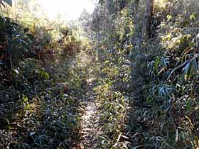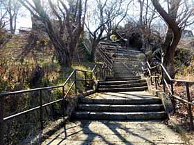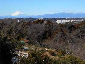 鎌倉周辺のハイキングコースはずいぶん前に歩き尽くした感があるのですが、ここへの報告をしていないのが多いし、年月も経ってほとんど覚えていないしで、また訪れて今度はここにレポート上げようかと。それで、地図を眺めて物色していたら、横浜鎌倉市境に未踏の尾根を発見。大船駅からその尾根西端に入り、東へ辿ってゴルフ場近くで南へ下り、折返して久々の六国見山を経て北鎌倉駅へ下るコースを策定しました。(文中、「地図」は地理院地図を指し、※は帰宅後調べて得た知見です。) まずは適当に道を拾って、地図上市境尾根西端の登山口と思われる寺記号を目指します。大船駅北改札口から東に出て太い道(<203>)を僅かに北上。右の裏道に入ってスイミングスクールの右側を行きます。信号交差点も直進し、青木神社入口を左に見て進めば左カーブして2本目を右折、住宅街の道を東進すれば山裾の車道(<21>)に突き当たります。僅か右から左分岐に入れば鳥居のような形をしたの山門の前です。目的の寺は「大長寺」でした。 大長寺の山門。山門をくぐり、境内の左縁のコンクリ道を登って行くと墓地を過ぎ、小径となります。農地の右を行き、右へカーブして尾根道となりますが、この辺は笹がかぶって藪っぽいです。 小径に入って始めは藪っぽい。すぐに藪は薄くなりますが、「比高的にも距離的にも手軽だし、付近の住民の散歩道だろう」と想像していたより若干ワイルドな道です。ひとしきり登った後一つ二つピークを越えて行きますが、急な下りには固定ロープが設置されていて助かります。 次の目標地点は90.0m三角点。ビニールハウス手前の突当りは右へ、次の分岐は左へ行き、三角点ピークの南側をトラバースした後、鞍部手前から左後ろへ折返すような分岐が三角点への道です。 この道で今来たトラバース道の北側上部を登ってと行くと右手に「南無仙元大菩薩」の石碑発見。しかし、その周囲に三角点標石はありませんでした。 更に先へ進むと左側が開けた緩斜面になっていて富士山〜丹沢山方面の展望が得られます。 90.0m三角点近くより、富士山〜丹沢山方面の展望。そのすぐ先のピークから先は急斜面が状宅地へ下っていて尾根道は終了。左手(北東側)から階段が登って来ています。この辺りを探し回りますが、ピークの切開きでは標石は見つからず、登ってい来た道より東側を下り始める道でやっと発見。この道はその先完全な藪となりますのでピークに戻って、登って来た来た道を分岐まで引き返しました。 さほどの分岐から先を目指します。この鞍部から稜線の左手住宅地側のトラバース道となり、40mくらい先に住宅地へ下る階段がありました。それを見送り右手の鞍部から藪っぽい尾根道に入りましたが、すぐに造成地の法面の上となって尾根道は分断。この辺、宅地造成が稜線まで侵食してしまっているようです。仕方なく先ほどの階段で一旦住宅地に降ります。 出来るだけ住宅地の右端近くの道を行くように進むと、程なく尾根道に復帰することが出来ました。さっきまでよりは遊歩道っぽい小径です。 しばらく尾根道を行くと、本日の尾根上初の指導標(三差路)があり、そのすぐ先に「荒井沢市民の森」の説明板がありました。 更に進むと左側が緩斜面の畑地となり、その先一旦樹林の中となりますがすぐまた左側が開けた畑地となります。KDDIのアンテナ塔の先からは、対岸の露頭(※駐車場造成地の法面のようです。)が目立ちます。その少し先からは北西方面の山岳展望(※仏果山塊の奥に大菩薩〜奥多摩)が得られます。 KDDIアンテナ塔の先より北西方面の展望。更に進むと右側がゴルフ場となり、その向こうを周るのでは六国見山までかなり遠くなるので、100m圏ピークから引き返しました。地図を見ると、KDDIアンテナ塔付近から南側に下る道がありますが、それを見逃してしまい、指導標三差路より更に戻った地点から南に下りました。 当初計画時には昼過ぎには全行程終了のつもりで弁当不要の判断でした。しかし、その計画より出発が1時間遅れたのにうっかりして弁当を調達していませんでした。このころすでに昼食時を過ぎていて腹が減っていたので、下り着いた麓から南の池(※散在ケ池)の畔経由で今泉台へ登る案は廃し、西へ車道を進みました。ここからは西へ行くほど家が多いので食堂またはコンビニ・萬屋等、食料調達できそうな店が現れるのを期待してのことです。しかし、そのような店は一軒もないまま白山神社前交差点へ。 ここで左折して南へ登って行きます。急斜面の手前で車道が左へカーブすると右手にショートカットの石段があり、30mほどの標高差を一気に登って上の段・今泉台三丁目の住宅地に登り着きます。 今泉台三丁目へ登る石段上部。住宅地の外周の道路を反時計回りに辿り、南西方向へ分岐する道を行けば、その末端部右手に六国見山へ小径の入口があり、8分ほどの登りで山頂に着きました。山頂に切開きはなく、道の右側に小さな山名