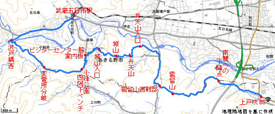 武蔵五日市駅0947…1015沢戸橋西(道間違い)1021…変電所分岐1059