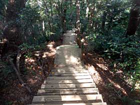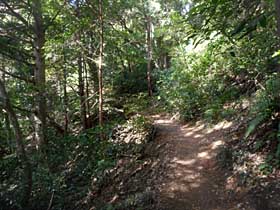 急に涼しくなってハイキングの適期到来。天気がよさそうだったので朝思い立って、定番の高尾山へ。今回は、高尾山の南面を自然研究路6号路→2号路→3号路→5号路→1号路と辿って登頂しました。 高尾山口駅前は平日朝なのに大混雑。流石、登山者世界一の山です。 ケーブル駅の左手から6号路の車道部分を行きます。やがて、6号路は左手の歩道へ入りますが、それと別れてそのまま車道を行きます。「この先私有地に付 (赤丸の中に白い横棒) 東京高尾病院」の標識がありますが、その先に「これより先 私有地につき マナーを守って 通行して下さ い 東京高尾病院」の表示があるので、歩行者の通行は許可されているようです。 いくつかある病院の建物の前を通り、最後の建物の先で車道は終わりますが、右手、建物の裏へ続くような階段を登れば、左に登山道が分岐しています。これを登って行けば、ケーブル山上駅付近から東南東へ派生する支矢尾根上の峠に着きます。 この峠へは、以前、6号路を琵琶滝付近まで行き、反対側から登ったのですが、こちらの道も使えそうだったので今回は近道しました。 支尾根上の峠。ここから、支尾根を急登します。標高差150mほどですがバテバテ(^^;。2号路に突当たったら左へ。 2号路。ほぼ平坦なトラバース道で、程なく3号路に合流。 3号路へ入ってからも30分ほどはほぼ平坦なトラバース道で3本くらいの支尾根を回り込み谷を渡って行きますが、その後支尾根を標高差70mくら急登で、またバテバテ(^^;。 すると、薬王院方面からの山腹の車道に合流し、左へ緩やかに登って行きます。程なく、ダートからコンクリ舗装道に変わり、やや傾斜が増すと、すぐに左手から6号路を合わせ、右へ折返して5号路を登って行きますが、それも僅かで、立派なトイレの前で1号路に合流、山頂はすぐ左です。 3号路車道部分。山頂付近は小学校や幼稚園の団体もいくつか来ていて大混雑。ソーシャルディスタンスを取って休む場所を確保するのは大変です。ただ、今回は昼過ぎには下山して駅まで辿り着けるだろうとタカをくくっていたので弁当持参なし。なので長く留まる必要はありません。 高尾山南西側展望台方面。この混雑を見て、下りはどうしようかと考えました。1号路は勿論、6号路や稲荷山コースもかなり人がいそうです。なので、いろはの森コースに決めました。 1号路を5分ほど下れば、左にいろはの森コースが分岐しています。 いろはの森コース上部。この道は、期待していた以上にすいていて、上部で登山者1名、下部で作業員5名とすれ違った以外は、人に出合わずに済みました。整備された道なのに不人気の理由は、登山口が駅から離れているのに、特段の見所がない道だからでしょう。 いろはの森コース下部。下りきって積まれた石伝いに小沢を渡れば、キャンプ場の前で日影沢林道に出て、左へ数分でバス通り(小仏峠道<516>)に出合います。 右へ僅かで、日影BSですが、時刻表を見ると50分待ちなので、高尾駅まで車道沿いを小一時間歩く事にしました。もう13時近いので腹が減って、弁当不持参が悔やまれますが、すいてる道を選んだので仕方ありません。 この道は車もあまり通らない田舎道なので、のどかな風景のなか、コスモス等の花を愛でながらのんびり歩くのも悪くありません。 ここを歩くと、いつも、不思議に思うのは豆腐屋がぽつんと1軒ある事です。 <516>小仏峠道の豆腐店。1軒だけ商店があるなら、普通は万屋の類の食料品店が妥当だと思うのですが、どうして豆腐屋なのかが謎です。 やがて、圏央道の高架をくぐれば山間部も終わりの雰囲気。小仏関跡あたりからは住宅密度も高まって、街という雰囲気に。 R20に出合い、左へ高尾駅を目指しますが、南口へ行きたいので、駅の手前で右折して、JRの踏切を渡りました。後は、京王の高架下を辿って高尾駅へ。 思い付きで、ぽっと出かけるには手頃な高尾山ですが、今回はいつも以上に混んでた気がします。軽いコースのつもりが結構バテたのは、久々のせいか筆者の足の加齢劣化かT_T)。 ▲項目索引▲ ◎トップページへ戻る◎ |