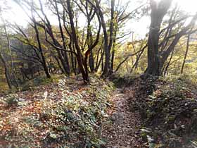 天覧山・多峯主山は散歩気分でお手軽に出かけられる場所です。実は、家の周りの木々が色づき始めたので紅葉が見られるかと思い、11/6にも行ったのですが、まだ始まりかけたところでした。(でも「飯能まつり」が見られたのでラッキー(^_^)。)そろそろ見ごろかも知りないと思い、また出掛けてみました。(文中、単に「地図」との表記は地理院地図を指し、※は帰宅後調べて得た知見です。) 飯能駅北側沿いの道から斜めの路地を使って近回り。大通りを西進し、中央公民館前を左折北上、図書館西交差点左折して僅かで能仁時手前に登山道があります。 天覧山登山道の紅葉。登山口から10分ほどで天覧山山頂に登り着きます。前回は日曜日で混んでいたのですが、今回は平日なのに幼稚園児らしき団体で混んでいました。しかし。前回同様、山名標識の裏手のベンチは樹間のためか無人でしたので、落ち着いて弁当タイムが過ごせました。 天覧山山頂から下り道の紅葉を見る。天覧山−多峯主山間は高度ロスを嫌って尾根伝いに行く事が多いのですが、久々に一旦谷へ下るルートを採りました。天覧山山頂付近の指導標も「多峯主山」はこちらを指していますし、ガイドブックにもよく載っているので、実はこちらがメインルートと言えます。 谷底まで下ると谷戸のような平坦地形の中の道となり少し上流側へ進んだ左手から「見返り坂」の説明板のある尾根道を登ります。 谷底の道。天覧山からの尾根道と合流し、左・雨乞池の分岐を見送って右の道を登れば石段(右側に子供用の鎖場が並行)の急登を経て多峯主山山頂に着きます。 多峯主山山頂。天覧山や飯能市街地を見下ろす。ここもそこそこ賑わっていましたが、コロナ等感染防止に十分な距離を取って休憩出来ました。もやっていて遠望は利きませんでしたが、明るく開けていて天覧山や飯能市街地を見下ろしながら気分よく過ごせました。 下りは、今まで使ったことのない道を採りました。御嶽八幡神社方面への道を下り、バイオトイレの先から左へ分岐し、雨乞池の南側を通り、その先から南下する尾根道で、地図には実線で描かれています。メインルートである御嶽八幡神〜ドレミファ橋近くへの道より、飯能駅に近いところへ下れるので車道歩きを短縮できます。 今回の下山路上部の美林。上部の雑木林、下部は植林の中のを下り、林を出ると細めの舗装道となって僅かでやや広め(片側1車線ですが両側歩道付き)の車道に先当たります。これを東進し、同じくらいの車道に合流して更に東進で能仁寺前へ。 能仁寺前入口の紅葉。すぐ先の図書館西交差点へは向かわず、ここを右折して中央公園通りを南下、市立博物館(特別展「天覧山」開催中でしたが、前回11/6にじっくり見たので、今回はほぼトイレを借りただけ。)へ寄ってから、その東で中央公民館前の道と合流し、往路を飯能駅へ戻りました。今回は市立博物館前からは諏訪八幡神社の北側を行きましたが、その先薄暗い小径となって沢へ下り、また登らなければならない(※標高差10mくらい)ので、神社の境内を通って南側の車道(※<28>)へ下る方が見所があり登りもないのでお勧めかも。(前回のルート。ただし、<28>はこちら側の歩道がすぐ途絶え、反対側に渡る時車が怖いです。) 紅葉については今回は11/6の時よりは進んでいましたが、盛りはまだ少し後のようでした。 天覧山から多峯主山へは、谷底経由の方が尾根伝いより変化があって、初めてならこちらの方が面白いかもです。流石メインルート。(※全体の標高差が小さいので、比率的に大きく感じる高度ロスですが、尾根伝いの最低鞍部までより余分に下るのは18mほどで、絶対的には大した量ではないです。ちょっとした道間違えでも、それくらい累積標高差が増えてしまう事は珍しくないですし(^^;。) 多峯主山からの今回の下山路は、手持ちのガイドブック数冊のどれにも紹介されていない道ですが、入ってみると、明瞭な道で、上部は雑木の美林で、かなり気に入りました。 ▲項目索引▲ ◎トップページへ戻る◎ |