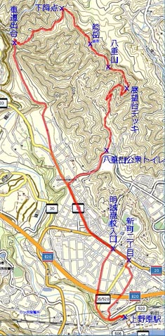 〇体力度A 神経度A (歩行合計約3時間40分) ◇5万図 上野原 □筆者参考文献 過去の拙報告 |