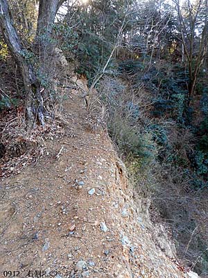 何となく疲れているけど軽い散歩程度で好展望のヒルウォーキングしたい。という事で加治丘陵の桜山展望台。ここのメインルートは旧サイクリングロード(北コース・南コース)ですが、今回は登り・下りとも北側の尾根道を辿る事にしました。どちらも丘陵部分が短いので過去見送っていたのですが、今回の希望にはぴったりです。(文中、単に「地図」との表記は地理院地図を指し、※は帰宅後調べて得た知見です。写真に記した数字は撮影時刻。) 元加治駅は北口しかないので、駅前から右(東)へ少し行って南下し、踏切を渡り、上橋を渡って更に道なりに進む。 ![]() ![]() 県道<195>を渡って住宅街を南下、道なりに路地に入ればすぐ車道は終わり、加治丘陵の入口(登山口1)。 ![]() 初めは両側に笹が密集しいていて難路を予感させられるが、すぐ普通の山道となる。谷沿いから斜面を登って尾根上となれば気分のいい道。 ![]() やがて、右側がえぐれた箇所が出て来て尾根は痩せて来る。更には、道の縁までえぐれた箇所が出て来たてのでビビって左へ僅かに下り、斜面を巻く(道あり)。 ![]() その後僅かの登りで、遊歩道(旧サイクリングロード)北コースに出る。右へ行くが、初めは下りなのでガッカリ。緩い登りとなり、左折して阿須(あず)山への道へ入る。反時計回りに阿須山の南へ回り込めば武蔵野音大方面からの道に合流し、北への階段状に整備された登頂路が現れる。僅かな登りで阿須山山頂。前回(96.01.14)同様木に囲まれ展望はないが、整備され四阿が出来ていた。 ![]() 少し休んで下る。武蔵野音大方面からの道を行き、北コースに合流。北コースの西端(南コースとの接合点)までは行かず、途中から左折して桜山展望台への近道を採る。最後Y字路となり、右が本線だが近そうな左の細道へ。しかし、展望台入口は右側なので距離はほぼ同じだった。 ![]() 展望台に入り階段で最上階に上る。比高20mあるので結構な登りだ。(登山で標準的な15分/標高差100mのペースで3分かかる。) 本日の視程はマアマア。昨日も今日も晴の予報で、予想最高気温(練馬)が昨日は6℃今日は12℃だったので今日にしたが、強風の吹いていた昨日の方が視程が良かったかも知れない。暖かい方が歩くの楽かと思ったが、最高気温低くても昼近くなって上着を脱ぐかどうかで、朝はどっちみち寒いので服装は変わらないし。 以前と較べ周りの木が育ってしまい、奥多摩北部〜有馬山辺りの視界が遮られてしまっていてガッカリ。それでもデジカメのシャッター押す手が忙しい。北方の白い山々が撮れたのは良かった。 ![]() ![]() ![]() 展望を堪能した後下る。展望台の前(南コース)を西に少し行き、こちらも西端までは行かず、腰かけのある場所から右折して近道を採る。北コースに出合ったら右へ進み、駿河台大学方面への尾根に入るが、道が尾根の西側から始まるので西側へ下る道かも知れない疑いがあって、分岐の僅か先まで行き、尾根上に道がない事を確認してから戻って来て入った。 すぐに右手、北コースとの間が広場に造成されているのが見えた。その先、明瞭な尾根道となりいい感じ。終盤は急な箇所もあるややワイルドな道となったが、それほど滑りやすくはないしロープも設置されていたのですんなり下れた。 ![]() 道は尾根の末端まで尾根沿いで楽しい。 ![]() その後僅かで車道に出た(登山口2)。 ![]() 車道沿いの歩道を北へ下って行く。道の両側共、駿河台大学の敷地のようだ。やがて、左が大学の駐輪場となれば、駿河台大学入口交差点。県道<195>を渡って立ち止まり、地図を見つつこの先辿る道を検討。 最寄りは元加治駅だが、まだ歩行意欲が旺盛だったし、まだ正午まで時間があり、散歩終了後すぐ昼食(今日は初めから午前中だけの軽い散歩のつもりなので弁当不持参、外食店利用。)にしたかったので飯能駅まで歩く事にした。 <195>を少し西へ辿ると「あけぼの・桜山・万葉 ハイキングコース →」の標識があったので右折して入ってみた。間もなく運動公園の駐車場となったが、入間川の川べりの道がありそうに見えたので道なりに奥へ。しかし、行止りで、川べりはブッシュで道はなかったT_T)。 駐車場の入口まで戻り、野球場の左側の道を行き、突当たった車道沿いの歩道を右へ。すぐに阿岩橋で、それを渡ったら左折して入間川左岸沿いに住宅街の道を進んだ。 間もなく八高線のガードをくぐると、左手入間川河川敷の奥に川苔山方面が見えた。 ![]() その後道なりに進んで、県道<218>に合流。しばらく行き飯能の駅ビルが目立って来た辺りで右斜めの裏道に入れば飯能駅南口はじきだ。 駅ビルの日高屋で昼食にあり付いた。 午前中で終わる軽いヒルウォーキングでしたが、登りの尾根・下りの尾根とも山道らしさがあって楽しかったです。下山後の平地歩きも都区内の散歩とは違ったのどかな雰囲気が味わえました。 ▲項目索引▲ ◎トップページへ戻る◎ |