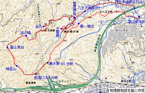 〇体力度A+ 神経度A+ (歩行合計約4時間50分) ◇5万図 八王子 □筆者参考文献 ネット上の複数記事 |