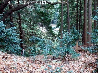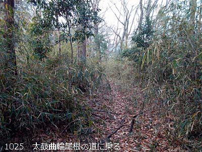 八王子城太鼓曲輪は以前(95.02.11)行った時からだいぶ経って記憶も薄れて来ましたが、好印象が残っているのでまた行く事にしました。(文中、単に「地図」との表記は地理院地図を指します。) 高尾駅北口から宝生寺団地行等、宮の前を通るバスは頻発しています。下車後僅かに戻って西への道に入り、少し進めば、判りにくそうなので光景をネットで調べてあった中央道を跨ぐ歩道橋(中宿橋)への入口に至ります。 ![]() 中宿橋を渡って道なりに少し登れば太鼓曲輪の尾根道に乗る事が出来ました。 ![]() 以前より歩く人が増えたようで、藪漕ぎはありません。やがて八王子城太鼓曲輪の堀切(城跡に見られる人工の小切戸(きれっと)が5か所現れます。堀切は巻道完備なので苦労することなく横断出来ます。 ![]() 太鼓曲輪尾根は細くて谷からの比高が小さいので右手樹間が覗けるところでは八王子城跡主殿跡へ続く谷沿いの道や建物等が間近く見下ろせます。 第5堀切を過ぎて少し本格的に登れば駒木野BS方面からの道に合流。太鼓曲輪尾根区間はここを以て終了です。 その先尾根道は地図上圏央道八王子城跡トンネルを横断し、421m標高点峰で蛇滝口BS方面からの尾根道に合流します。 ![]() 熊笹山への登りは結構きつく感じましたが、山頂は植林の中、道が通っているだけのショボい場所です。 ようやくたどり着いた次のピークが富士見台。昼食にします。今日も富士山は見えません。ここには数回来ていますがその名に反し、富士山が見えた事の方が少ないですT_T)。 富士見台のすぐ北を通る北高尾山稜コースを東方へ進み、八王子城跡本丸を目指します。 小さ目のアップダウンを繰返し、太鼓曲輪のより大きめの堀切から巻登れば詰の城で、八王子城跡の最奥・最高点のピークです。 ![]() その後本丸(八王子城山山頂)を経て下りました。山頂直下の八王子神社は前回(95.02.11)訪れた時は老朽化と台風被害でボロボロでしたが改築されたようです。 ![]() 山を下りきって城跡管理棟の前のベンチで休憩 最近は超低山歩きが多くて、その範疇にありがちな城跡にも興味を持つようになったので、今回は初めて八王子城跡の居住区域も歩いてみる事にしました。 指導標に従って太鼓曲輪尾根北側の山裾沿いの遊歩道を辿れば橋を渡って主殿跡(城主の館があった場所)に着きました。 ![]() 主殿跡付近を見物した後、谷沿いの道を戻ります。 管理棟前を通り過ぎ、バス通りとなって八王子城跡BSを通りますが、平日にバスの便はないのでそのままあと1km強程歩いて、中央道の高架下にある霊園前・八王子城跡入口BSから高尾駅北口行バスに乗りました。 前回藪っぽくて皮軍手必携だった太鼓曲輪尾根も藪漕ぎ不要になっていて、堀切も巻道が整備されてだいぶ歩きやすくなった印象です。駒木野BS方面分岐からはよく整備されたハイキングコースです。以前と比べて「小さな冒険」的楽しみは減りましたが、高尾山等と較べると人に会わない静かな山歩きは楽しめます。 主殿跡へ行ったとき、更に谷を詰めて逆コースで太鼓曲輪尾根を辿るショートコースを思いついたので、近々歩いてみたいです。 ▲項目索引▲ ◎トップページへ戻る◎ |