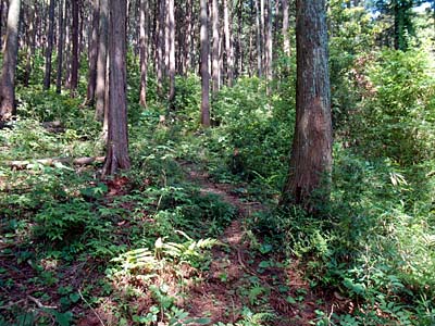 虫も出る季節なので、藪山ではないお手頃な山として大高取山に行く事にしました。生越駅から登るとすると無名戦士の墓を通って登り、桂木観音を通って下るか、その逆が定番で、過去にもそのようなコースを歩いたと思うので今回は登り下りとも無名戦士の墓・桂木観音を通らないコースを計画しました。(文中、単に「地図」との表記は地理院地図を指し、※は帰宅後調べて得た知見です。) 越生駅から西に出て広めの道路(※県道<30>)を北上し地図上「黒岩」註記の上の寺記号を目指します。途中、過去にも見た円筒形の郵便ポストの置き場を通りましたが、オリジナルの赤ではなく無残にも青や黄色やピンクに彩色されていました。 地図とGPSで確認して左折し、寺記号の場所へ向かいます。寺記号は「五大尊明王」でした。 ![]() 五大尊明王 左手から回り込んで建物の裏を登って行きます。ヤブ道ではありませんがメインルート程は踏まれてない感じです。 ![]() 登り初めの斜面の道 ジグザグに登って尾根道に出ます。左に行きますがその方向、指導標には「大高取山」ではなく「西山高取」と書かれています。西山高取は記憶になかったので「大高取山の別名かな」とも思いましたがとにかくそちらへ。尾根道は広てよく踏まれています。 小さなピークをいくつか越えて登って行くと指導標が左「西山高取」と右「大高取山」を示す分岐点に出て西山高取は大高取山とは別であることが判りました。ほんの少し西山高取側の伐採したままになっている丸太があったのでそれに腰かけて休憩。(※西山高取はこの分岐点から僅か60m程の場所でした。一つの山頂部の北西端がこの分岐点で南東端が西山高取のようです。こんなに近いと判っていたら西山高取に寄って行ったのに。) 大高取山方面に登って行くと「白石様」と表示された露岩がありました。 ![]() 白石様 その先、324m標高点峰には「根っこ山」の表示がありました。山頂は道から数m北に入った場所です。手前の丸太に腰かけて小休止。 根っこ山からひと頑張りすれば大高取山頂稜部の一角(南東端)で主稜上の道に出合います。右へ僅かに下って僅かに登れば大高取山の山頂です。ベンチなど座る所は比較的沢山ありますが、休日だと満杯かも知れません。 山頂は木に囲まれていますが、北東側(前回筑波山が見えたが今回はもやが濃くて近くの市街地や丘陵しか見えず)と南西側(奥武蔵高原方面)の一部だけ伐採されて展望があります。 南西側を眺められる場所に腰を下ろして弁当タイム。 ![]() 十分休憩したら桂木観音方面(南)へ下ります。すぐに先ほどの分岐を過ぎ、少し下って登ったピークには「桂木山」の表示。その先の分岐を左折して桂木観音方面と別れて東に向かう尾根道に入ります。 やや大きく下った後、いくつか小ピークがあり、尾根道も巻道もありますが、指導標に従って「西山三石展望台」ピークには寄って行きました。北東面が開けていますが、山頂同様近くしか見えません。 更に尾根道を道なりに東へ下って行きます。麓が近付いた場所に展望デッキがあって宿泊施設らしき場所(※グランピングキャビン)が見下ろせました。 ![]() グランピングキャビンを見下ろす デッキの左から僅かに下れば車道に出ます。後は下へ下へと下る道を拾って行きます。 橋(※上宿橋)を渡って道なりに東進すれば、八高線の踏切を渡って10分強で東上線・東毛呂駅に着きます。 今回、大高取山ならメインルートではなくてもヤブのない道があるだろうという目論見通り、過去歩いていないであろうルートで普通に登り下り出来ました。視程が悪く東側の遠望は得られませんでしたがこの季節、期待してなかったので落胆はありません。前回無かった山頂からの奥武蔵高原方面の展望が得られたのは良かったです。 ▲項目索引▲ ◎トップページへ戻る◎ |