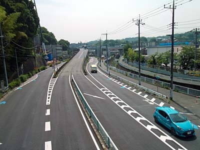 今回、京王稲田堤駅から多摩丘陵東部の造成地の残丘を拾って小田急・向ケ丘遊園駅まで歩く散歩を企てました。目標通過地点は地図上で稲田堤駅南の寺記号や神社記号のある丘(60m圏)・「生田(五)」注記の東の丘の上の平地(生田配水池 70m圏)・枡形山(84m)です。(文中、単に「地図」との表記は地理院地図を指し、※は帰宅後調べて得た知見です。) 京王稲田堤駅から南へ500mくらい辿り左折(ちょっと行き過ぎたので戻って右折)、少し東進後右折して緑地(丘)の間の道を南下し左折して細い道に入り東進、左カーブの辺りで右の緑地(小径) に入りました。 ![]() 菅北浦緑地の道 特筆すべき物もなく間もなく緑地を抜けた所は園地になっており「菅北浦緑地」の表示板がありました。 その後、住宅街の道を適当に拾って東南東に進めば、地図上「寺尾台(二)」註記の丘の北側を通って、左に広い運動場を見て進みます。 右に寺がある丁字路を左折して少し行くと右手に長い階段が現れます。 ![]() 生田配水池への階段 地図上標高差44mもある階段を登り切れば生田配水池の門の前で、ベンチもあり北〜東が望めます(※生田配水池展望広場)。 ![]() 生田配水池展望広場より北東を望む 柵の中(生田配水池上面)はソーラー発電所になっていました。 柵に沿った道を南へ行き、西へ回り込めば小公園(生田ふれあいの森)ですが、そこはあっという間に一周して南へ下ります。 住宅街の道を拾って東進。生田東高校の前を過ぎ、枡形中学校前を過ぎようとする寸前で右折、突当り左折で東進後、ジグザグに道を拾って南へ下れば、広い道(県道<3>)に出ます。 東生田歩道橋で南へ渡ります。 ![]() 県道3号東生田歩道橋より東方を望む 東生田小学校前から県道<3>の南を並行する川沿いの道を東進。広い道(県道<13>)の下をくぐって300mくらい先で右折、小田急線の踏切を渡ったら左折して線路沿いを東進。 コンビニ(7-11)の先で右折して道なりに登って行けば枡形山の山頂広場に着きます。 枡形山展望台はエレベーター完備で楽に登れますが、この日の視界は遠望ゼロT_T)。 ![]() 枡形山展望台より山頂広場を見下ろす 枡形山からは北東へ下ります。尾根道から木道や木の階段の整備された谷沿いの道を下れば「生田緑地長者穴口」の表示板のある登山口に着きます。 ![]() 生田緑地長者穴口 下り着いた裏道を右へ行けば、広い道に出ますので左折、500mくらいで向ケ丘遊園駅です。 今回、あまりダートの小径は通りませんでしたが、3ヵ所の目標通過地点附近以外も結構アップダウンがあって、ショートコースながら平地の散歩よりはハイキング気分が味わえました。 ▲項目索引▲ ◎トップページへ戻る◎ |