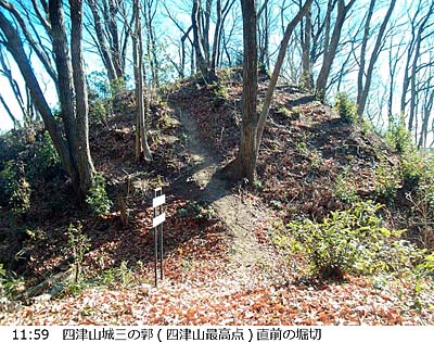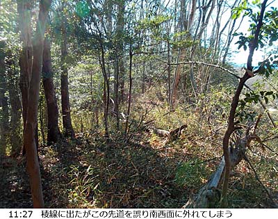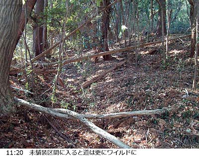 四津山へは以前(17.02.20)東側から登り下りしましたが、主稜は最高点のある北西端ピークより更に北西に続いています。なので今回は北西側から主稜伝いに登って東側へ下ろうと思いました。 最高点ピークのすぐ北西の鞍部に南西面から登る道の入口にはGoogleマップに「西登山口」の註記がありますが、もう少し尾根伝いに歩きたいので、地図上北東面から159m標高点の南東で主稜に乗り、四津山北西の鞍部に続く実線1本の道(幅1〜3m)を行く事にしました。(文中、単に「地図」との表記は地理院地図を指し、※は帰宅後調べて得た知見です。) 男衾駅を出発し、適当に道を拾って(道を間違えて少し遠回り(^^;)、巨大な白い建物(※倉庫)が建つ丘の北側へ。山裾へ近付けば、少しの間市野川の左岸沿いに歩いた後、右岸山裾寄りを行きます。 この辺り、「田舎」と言う言葉がぴったりな実にのどかな風景です。 ![]() やがて、右折して山の方向に向かい、目的の道を登ります。舗装道上部で事業所(※花火工場)の裏側に回込むと道には落ち葉が積もり、枝などもあって荒れて来ます。 ![]() 事業所裏から右カーブして間もなく未舗装道となります。こちらは倒木等あって、更にワイルドです。 ![]() 進むにしたがって道は判然としなくなりますが、行けそうな所を登って何とか稜線に登り着きました。 ![]() 尾根道となって赤テープ等もあり安心しましたが、南西面をちょっと巻いてるつもりがGPSを見ると支尾根の下降路。 ![]() 少し引き返して南西面をトラバースしますが、畑地の上縁付近まで下ってしまっていて、民家も近いので、「見咎めらられたら」とビビります。水のない浅い谷を登って稜線に復帰。 小ピークを越えると四津山北東の鞍部です。 少しきつい登りを頑張り、山頂直前で顕著な堀切を渡りました。 ![]() 登り着いた四津山城三の郭に最高点があります。 三の郭からは赤城や日光等北関東方面の山々がよく見えます。 ![]() 僅かなアップダウンで二の郭を経て神社のある本郭はすぐそこです。こちらからは、北関東や筑波の他、外秩父方面の山もよく見えます。 ![]() 下りは急な石段から始まる参道です。石段以外の場所もコンクリ舗装された道です。 ![]() 車道に出たら少し右へ下って突当りを右折。広めの車道(片側歩道付き)に出て左折、道なりに東南東方向へ進みます。振返れば本郭ピークに四津山神社の建物(※目立っているのは神楽殿。その左に本殿も。)が見えます。 ![]() 総合グラウンド(東)交差点で右折、南下後総合グラウンド入口交差点で右折。しばらく県道<11>を行きます。<11>と言えば個人的には横瀬町から東秩父村への定峰峠越えの道のイメージでしたが、「熊谷小川秩父線」(※)という事で熊谷まで通じているんですね。 日赤病院前交差点からは左の道を行けばやがてガードと踏切が見えますが、小川町駅には北口はなさそうなので、線路を越えてから右折して駅を目指します。 麓の田舎道も風情がありましたし、四津山からは、前回と異なり好展望を楽しめましたので、今回の眼目であった尾根歩きはあまり出来なかったものの行った甲斐はありました。機会があればまた東側から登って、主稜の道を行ける所まで行ってみたいです。 ▲項目索引▲ ◎トップページへ戻る◎ |