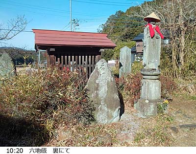 笛吹峠は以前(13.06.30)物見山方面から歩きましたが、途中地球観測センターから笛吹峠の一つ東の峠まで尾根沿いのルートを外れ、南側に大きく迂回してしまいました。その前(01.03.11)は物見山のすぐ西から南へもっと大きく迂回していました。それで、今回こそはそこを通ろうと久々に笛吹峠・物見山・岩殿観音を訪ねる事にしました。 前2回は物見山方面→笛吹峠→嵐山駅 と辿っていましたが、笛吹峠以西にも尾根沿いの道(巡礼街道)があるようなので今回はそちらを歩いてみたく思い、明覚駅から逆コースで歩くことにしました。しかし・・・。(文中、単に「地図」との表記は地理院地図を指し、※は帰宅後調べて得た知見です。) 朝霞台から乗った東上線の急行が遅れ、川越には乗換え予定の川越線列車の発車まで1分もない時刻に到着。それに乗らないと高麗川発の予定の八高線列車に間に合いません。八高線1本後の列車なら越生乗換えでも乗れるので、東武線で生越まで行く事に。生越駅スタートで歩く事も考えられますし。 で、越生に着いても八高線の列車発時刻まで1時間以上あり、駅近くに1時間楽しく過ごせそうな場所は見当たらないし、次の列車を待っての明覚駅スタートに比べて歩行距離は延びても笛吹峠着時刻はほぼ同じくらいと思われたので、生越駅スタートにしました。 東口前からまっすぐ進めば橋を渡って県道<30>に突当たり、左折。駅方面の奥には「世界無名戦士之墓」が目立つ大高取山、その右手越辺川上流方向には笠山・弓立山等が望めます。 ![]() <30>を進み、「<41>→鳩山」を示す標識の越生高校(北)交差点で右折して僅かな傾斜を登って行けば地図上88m標高点のある六地蔵峠(地名標識なし)へ。交差点手前、右手に石碑・石像群があります。 ![]() その先緩く下って行き、大きく右カーブして左分岐路に入ります(「←埼玉西武クリーンセンター」の標識あり)。登りに転じ、次の峠辺り、左手にクリーンセンターの入口があります。それを示す標識の柱の土台のコンクリに腰かけて休憩。 下りとなり平地となって小学校前を通り、左へカーブして小さな峠を越えて行けば県道<171> に突当たります。と言っても、正面の細道(地図上実線1本)を加えれば十字路ですが。 地図上、この細道を登って行けば巡礼街道に出られるのでそちらへ。しかし、間もなく笹薮となって通行不能、引き返し、少し裏道を東進してから<171>に。<171>を東進します。この先、左へ分岐して笛吹峠の一つ西の峠を越えて行く車道があり、それを行けば峠で巡礼街道に合流出来ますが、それより手前で左へ農道に入り、少しショートカットしました。 峠で、左(西)から来る巡礼街道に出合いますが、右(東)へ道が見つからず少し先(北側)まで探しに行った所で地図の描画を思い出しました。巡礼街道へは峠の100m位手前(南)から細道が右へ分岐して峠道と並行して峠道より大きく登りながら北上し、峠付近で直角に右カーブしている事を。分岐まで戻るのは業腹なので峠から傾斜も高さも僅かな法面を登って巡礼街道に入りました(^^;。 ![]() 巡礼街道を東へ辿れば程なく98.2m三角点。標石は1分弱ほど探して道を僅かに左(北)側に外れた所で発見出来ました。道に戻って東へ進めば割とあっけなく笛吹峠に着きます。四阿のベンチで休憩。 ![]() 巡礼街道の続きを行きます。こちらは笛吹峠まで以上に整備された道です。やがて、県道<41>に出合います。ここは笛吹峠の一つ東の峠です。ここから、いよいよ本日最大の眼目である、過去迂回してしまった道に入ります。というつもりでしたが、今回も迂回する結果となりましたT_T)。 目的の道の入口からダンプカーが入って行くのが見えて嫌な予感。それだけなら注意して通ればいいのですが入口から少し奥には道の両側を塔(太い柱)が挟んでいて門のようで、その右側一帯を囲うように鉄板の高い塀。土木事業所のようです。 もしかしたら工事中とかで迂回路があると思い、右往左往して探しますが、北側はゴルフ場の敷地で立入禁止。事業所の南側に道っぽく造成された場所があったので入ってみましたが100mくらいでお終い。そんなこんなで、10分以上もロスした挙句、前回同様南へ迂回しました。 <41>を南側へ下り、左折して東へ行きます。地球観測センターが近付くと、さっき入れなかった道の反対(東)側の分岐があり、そこには「この先通行止め」等の表示はありません。当然「なら、<41>側はどうなってるんだ」という疑問は湧きましたが、序盤の距離延長や、先ほどの時間ロスで焦り気味だったのでこちらから入って(戻って)調べると言う考えには至りませんでした。 程なく道の右側は地球観測センターの敷地となり、金網と草木越しにパラボラアンテナ等が垣間見えます。間もなく、地球観測センターの入口。 ![]() この少し先て左折して遊歩道として整備された公園(「市民の森」)内の道を行きます。バス通り(県道<343><212>) に出る直前の標柱に記された「← まなびのみち」に釣られて左